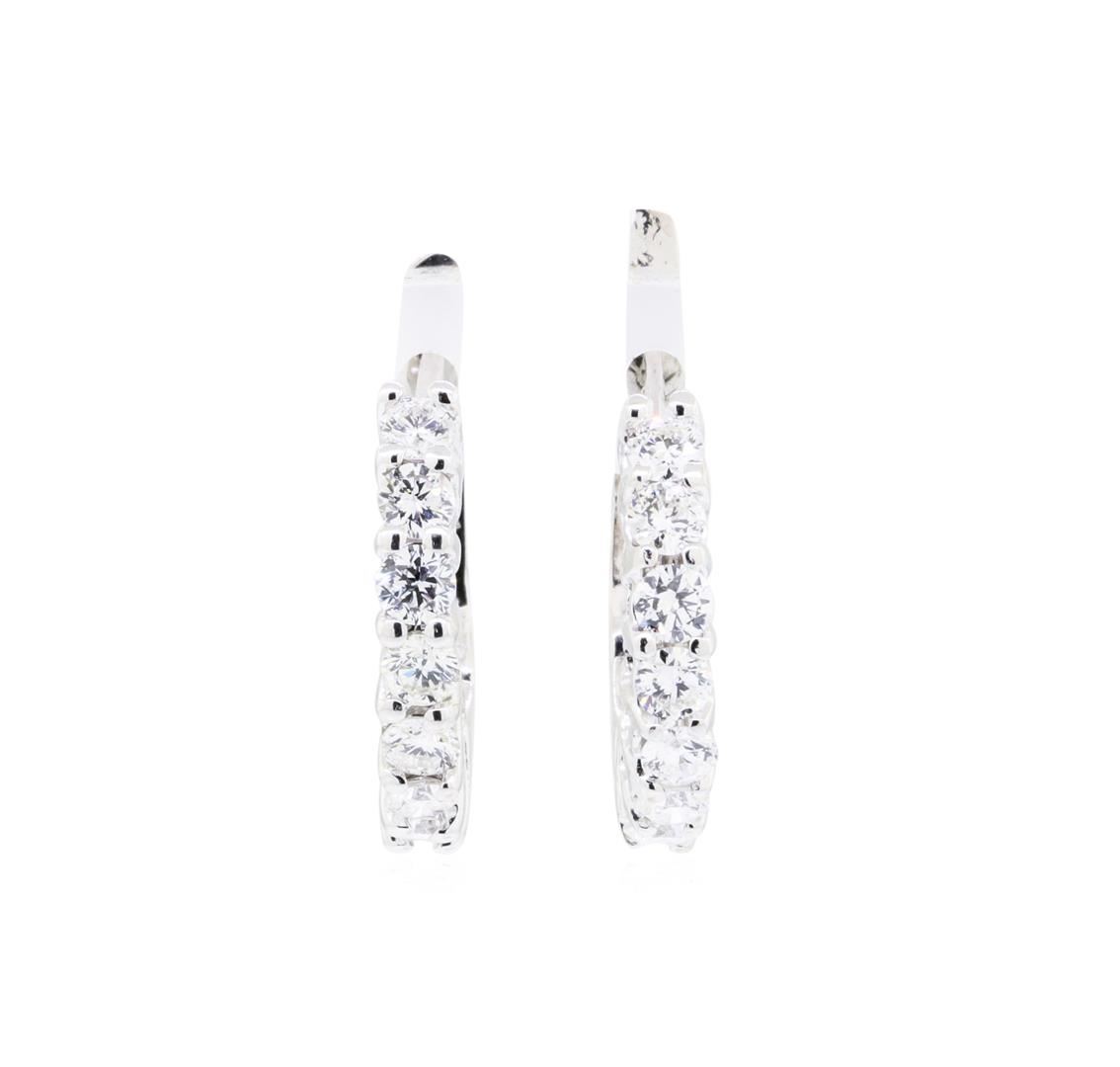 One pair of earrings with hinged clip backs featuring: 14KT white gold weighing 2.6 grams containing diamonds weighing 0.56ctw.