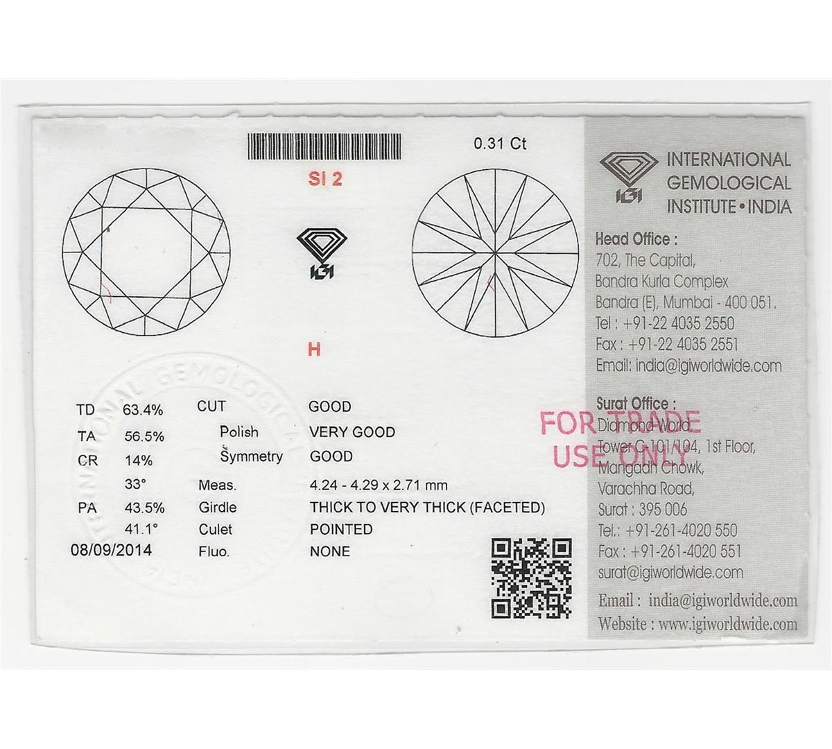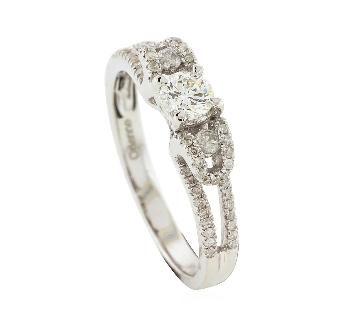 One 14KT White Gold 0.59ctw Diamond Ring with a total weight of 3 grams. The center diamond has a weight of 0.31cts with a color of (H) and a clarity of SI-2. Total weight of side diamonds is 0.28cts. IGI Appraised.