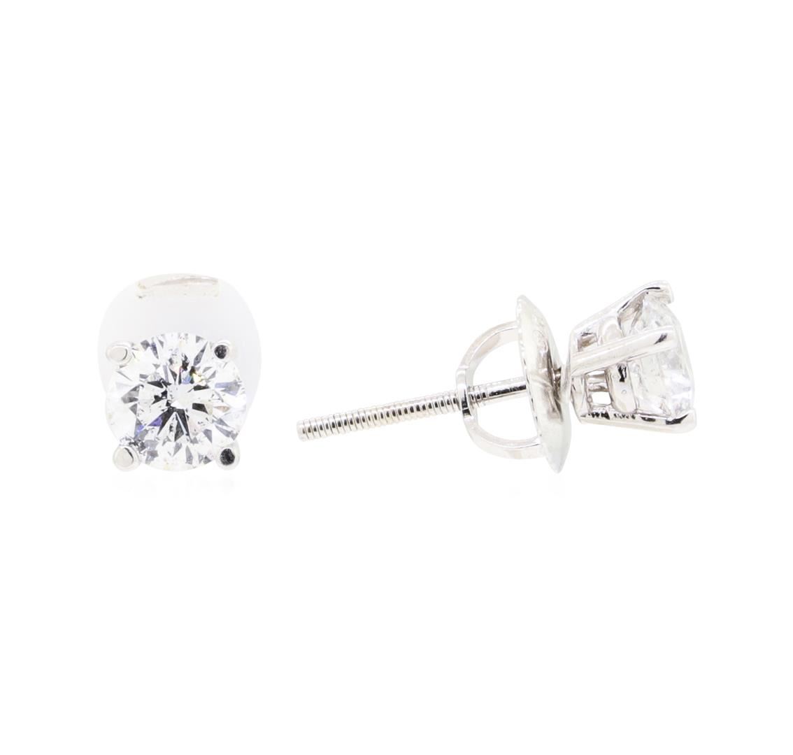 One pair of stud earrings with screw on/screw off posts and backs featuring: 14KT white gold weighing 0.8 grams containing diamonds weighing 0.60ctw.