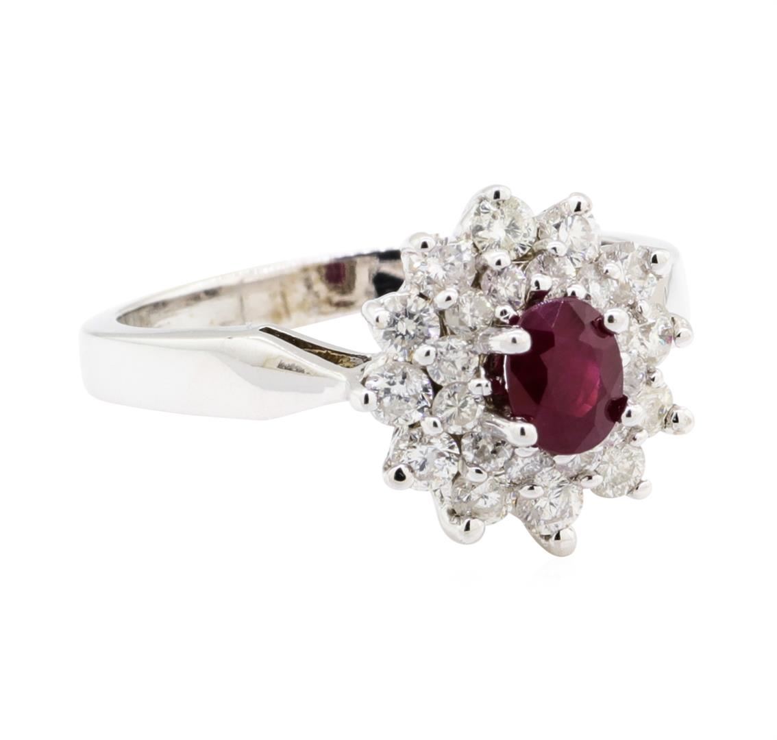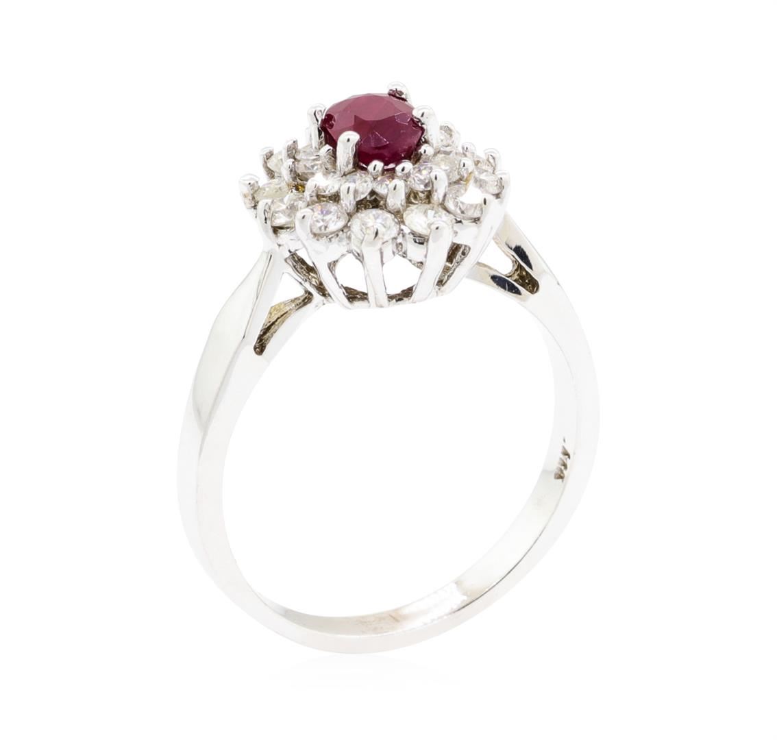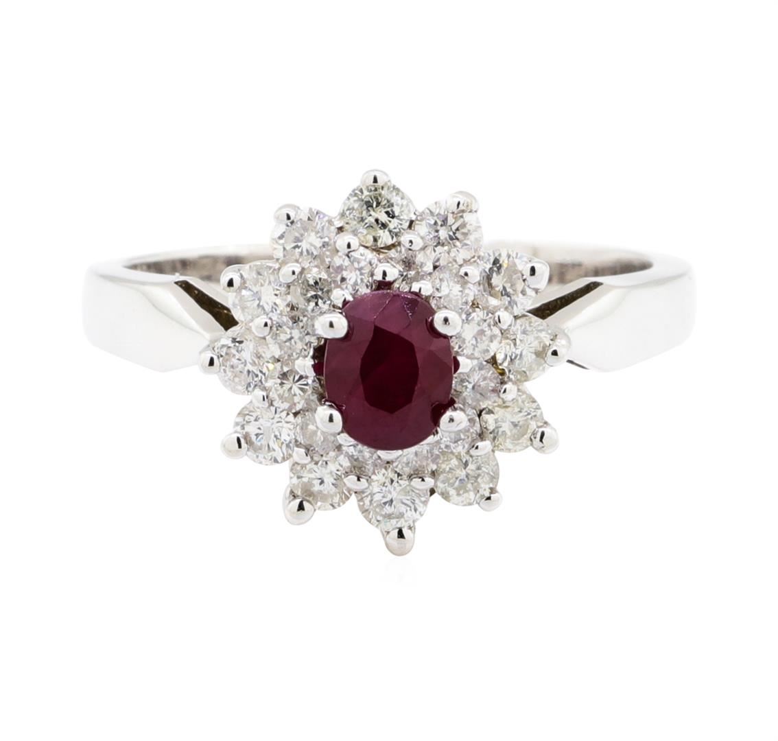 One ring featuring: 14KT white gold weighing 4.4 grams containing one ruby weighing 0.50ct and diamonds weighing 0.60ctw. The ring is a size 7.5.