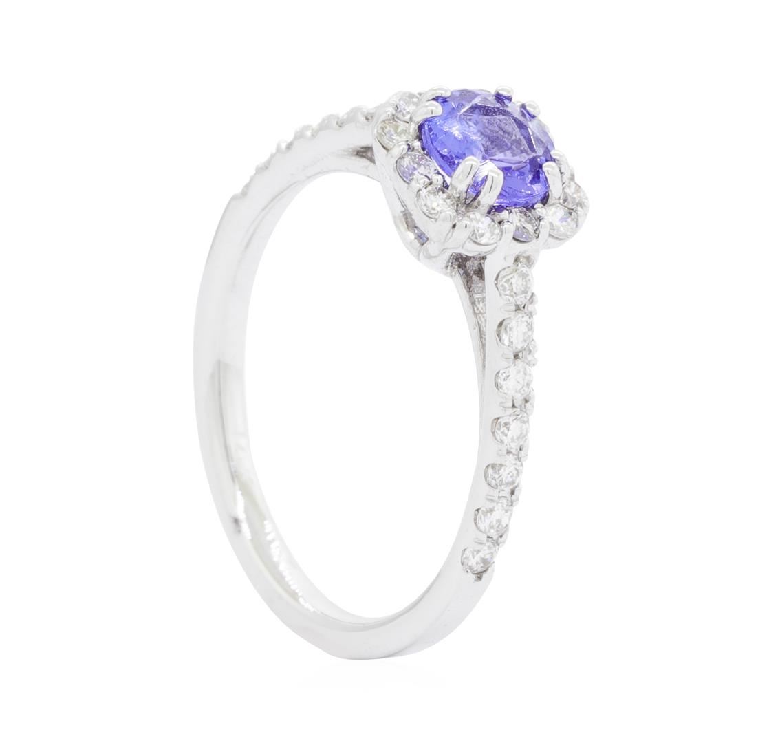 One ring featuring: 14KT white gold weighing 2.5 grams containing one tanzanite weighing 0.62ct and diamonds weighing 0.50ctw. The ring is a size 6.5.