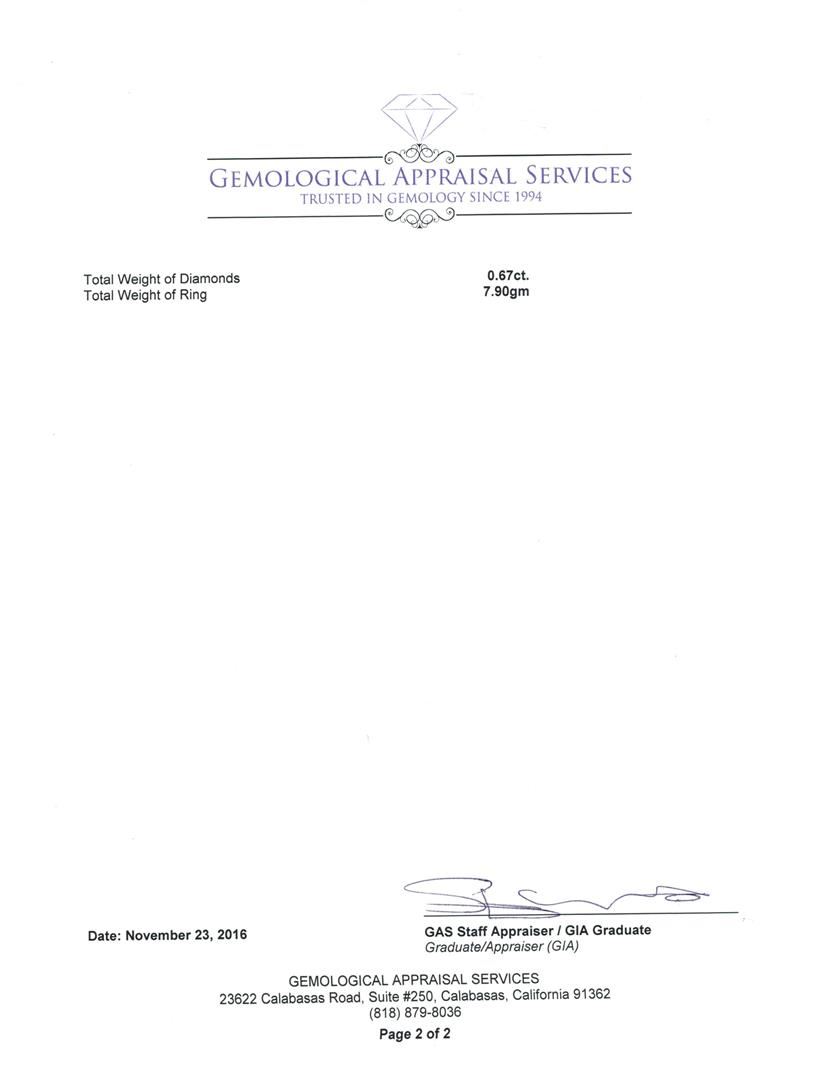 Regarding Appraised Jewelry, Watches and Loose Stones -