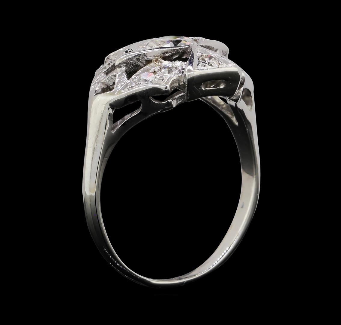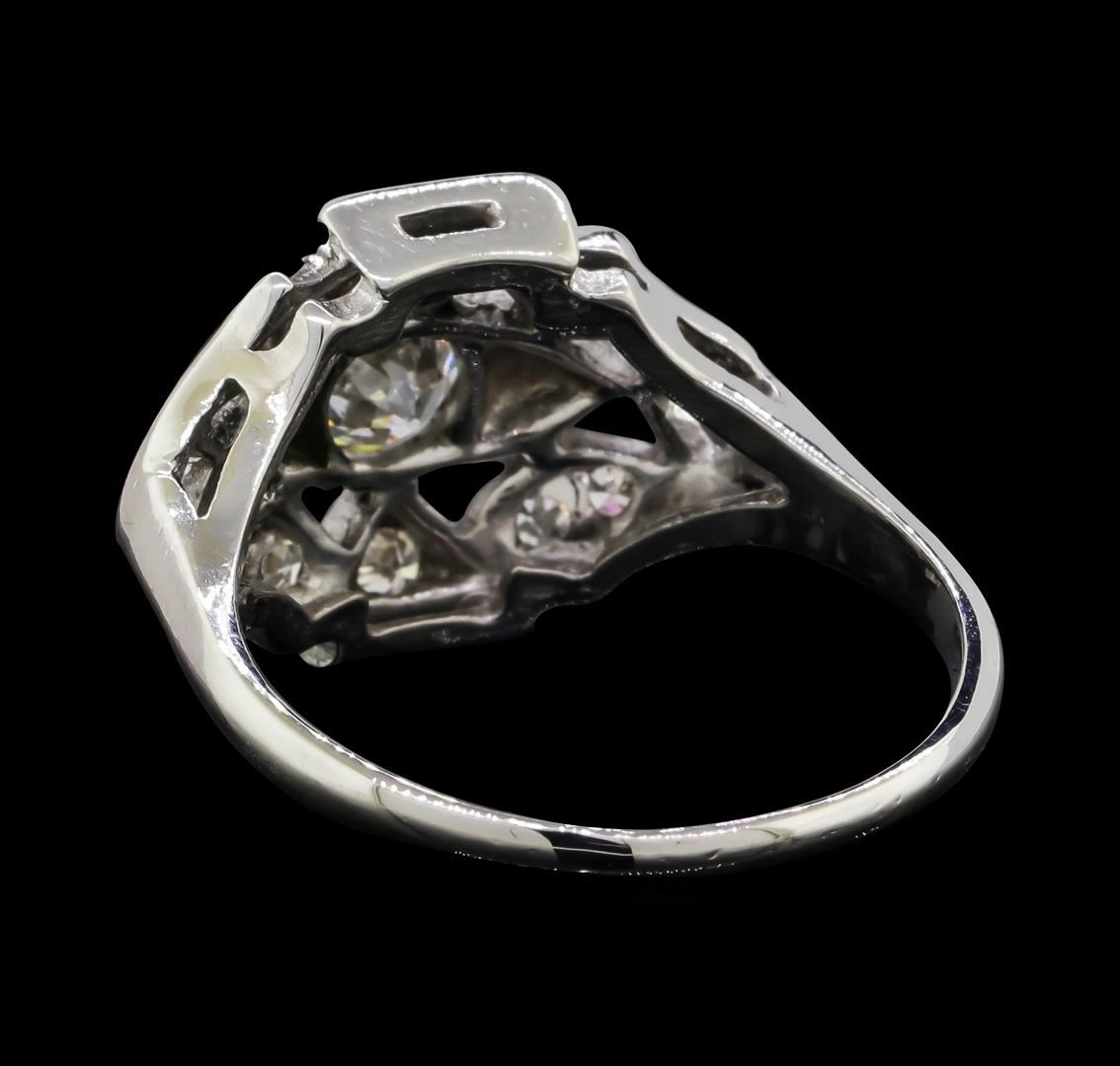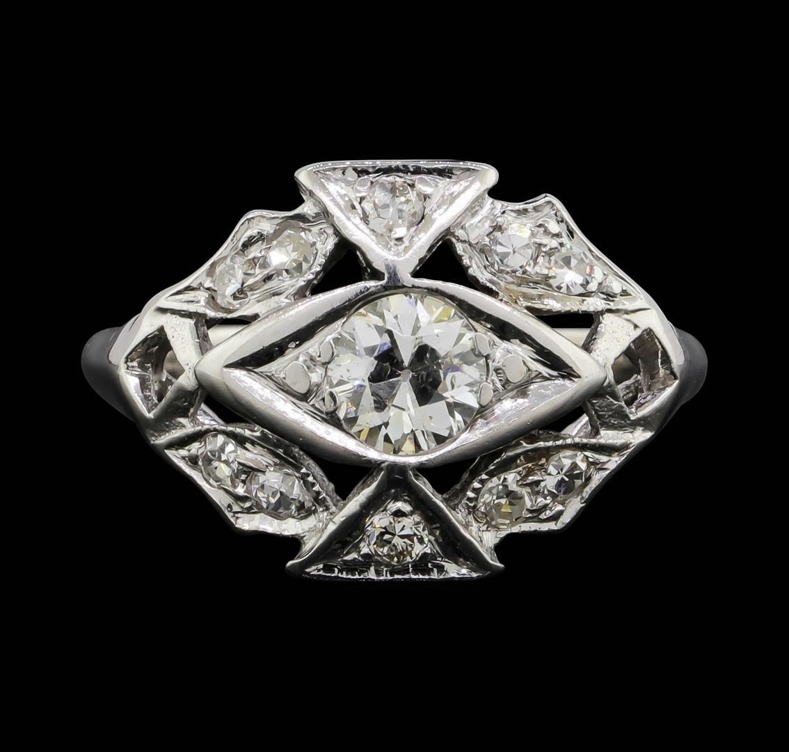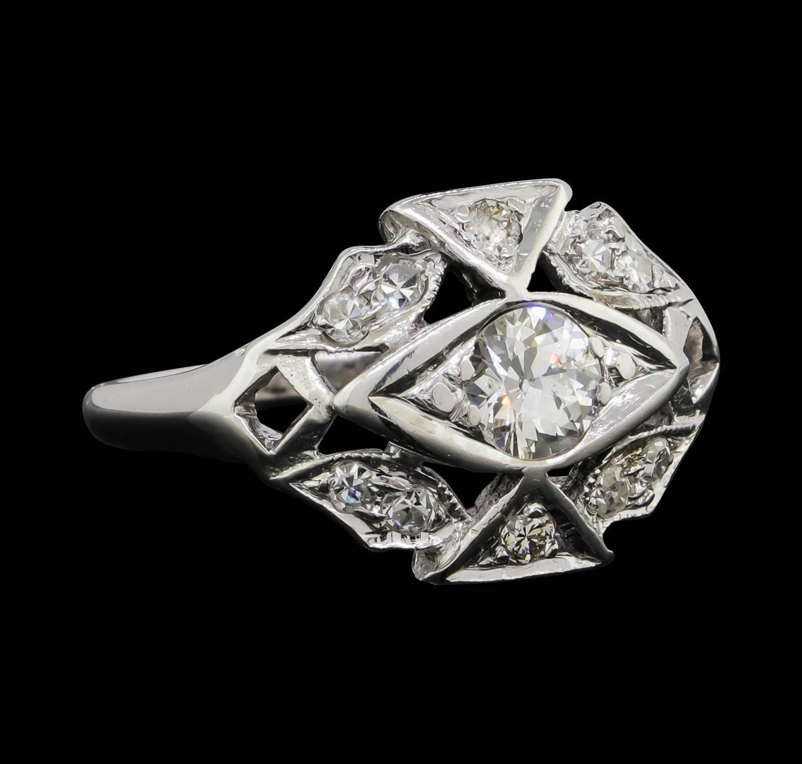 One lady's ring featuring: 14KT white gold weighing 3.6 grams containing one center mine cut diamond and surrounding diamonds all weighing 0.68ctw.