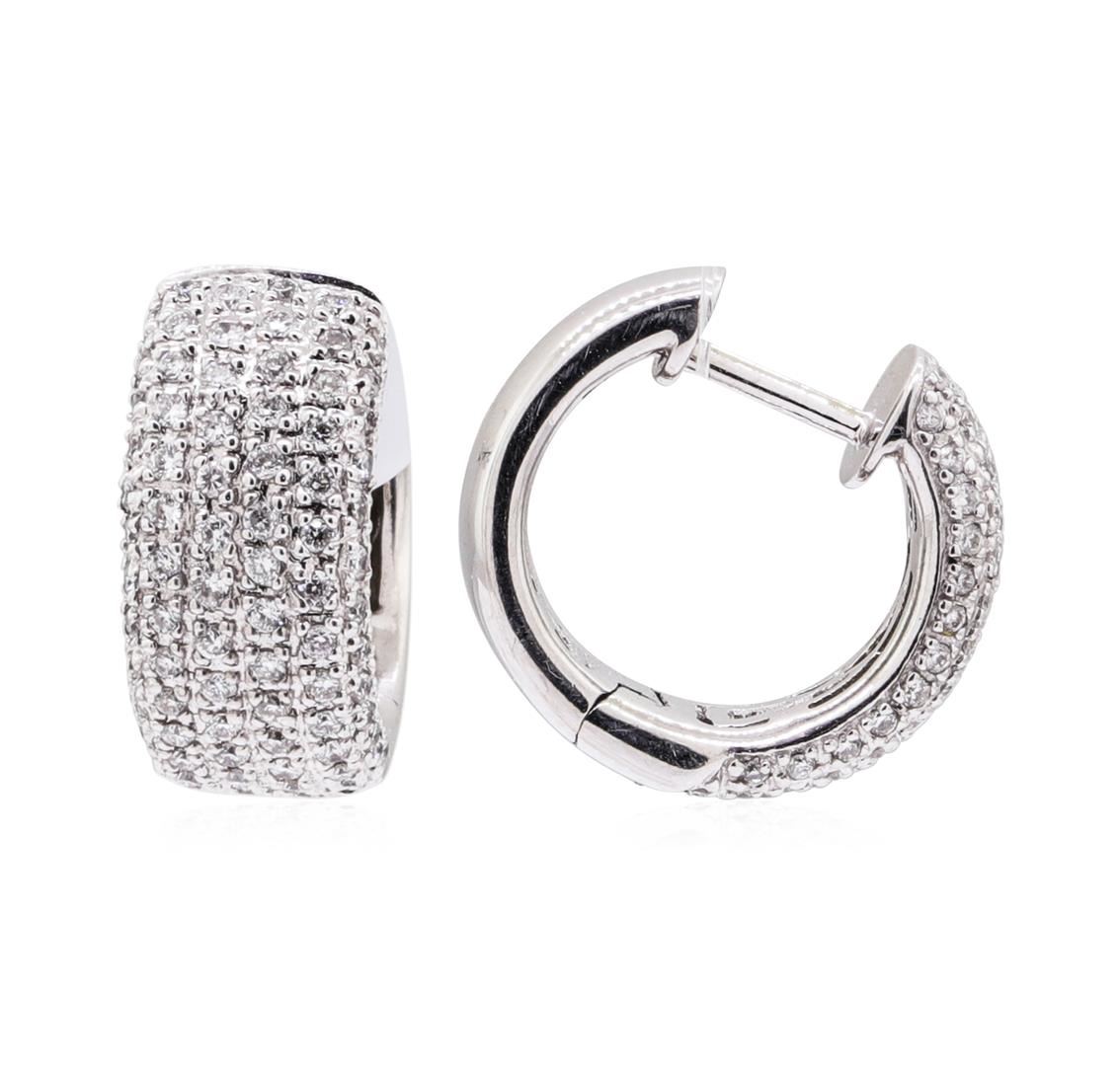 One pair of huggie hoop earrings featuring: 14KT white gold weighing 6.0 grams containing diamonds weighing 0.75ctw.