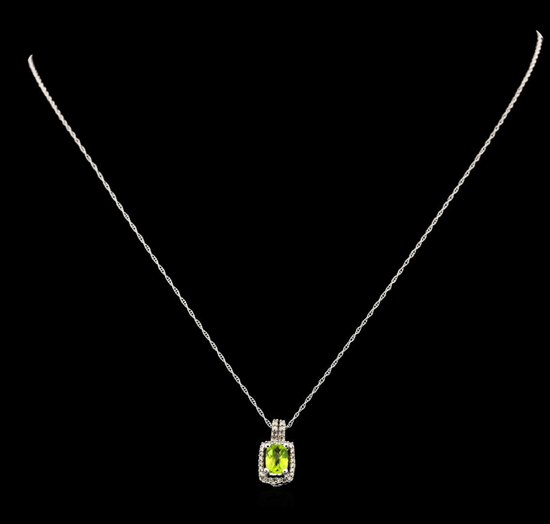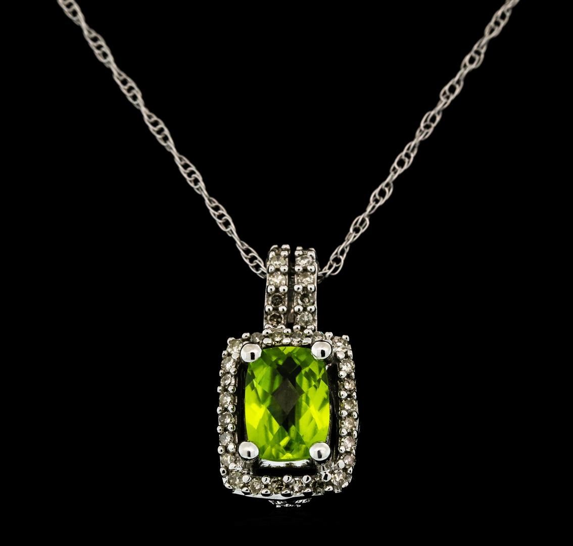 14KT White Gold 0.79ct Peridot and Diamond Pendant with Chain