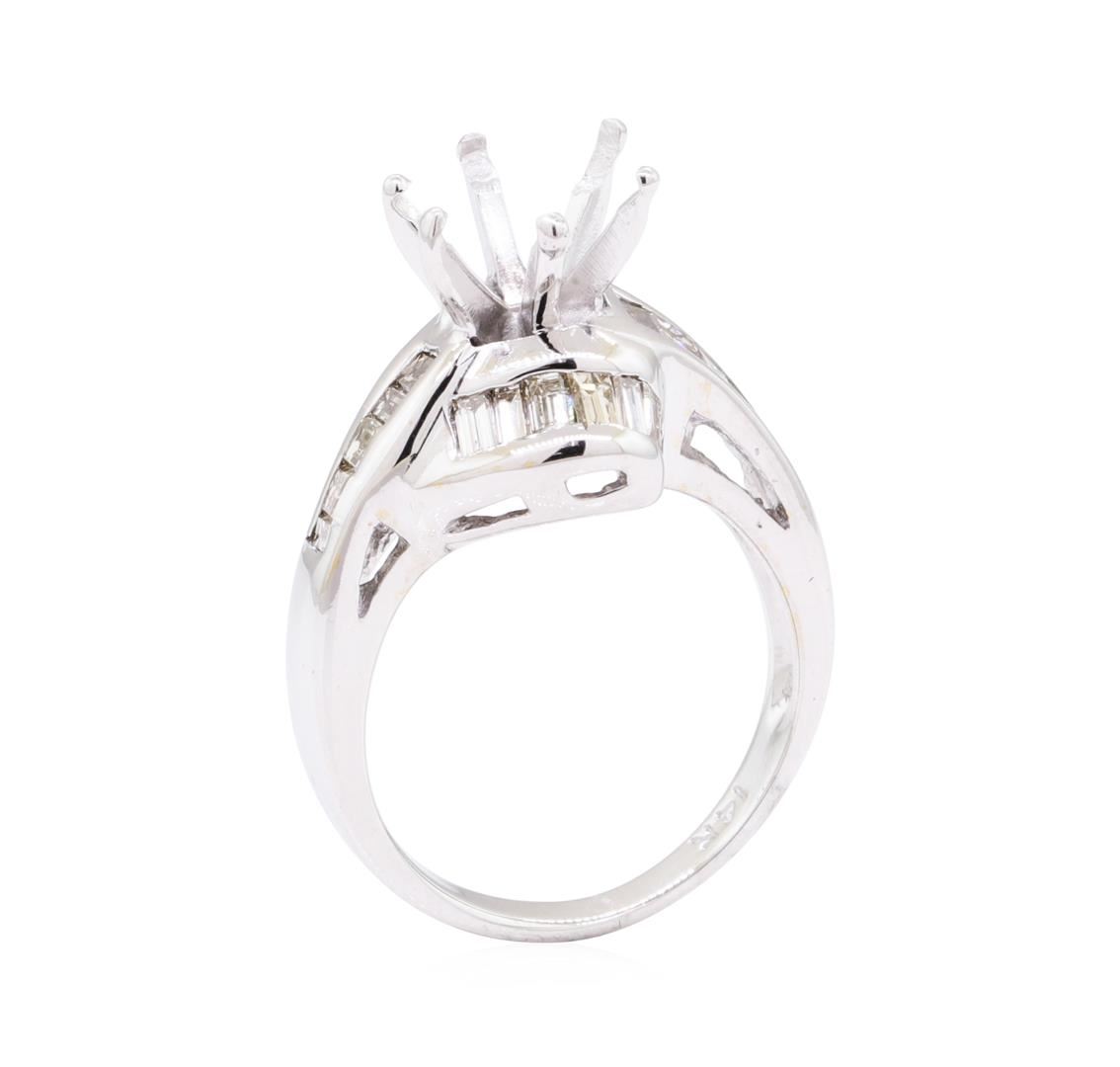 One semi-mount lady's wedding ring featuring: 14KT white gold weighing 5.6 grams containing diamonds weighing 0.80ctw. The ring is a size 4.