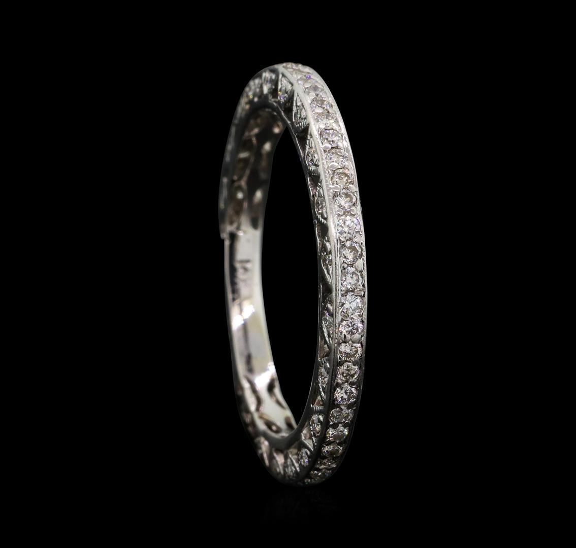 One lady's wedding band featuring: 14KT white gold weighing 2.1 grams containing diamond weighing 0.80ctw. The band is a size 6.5.