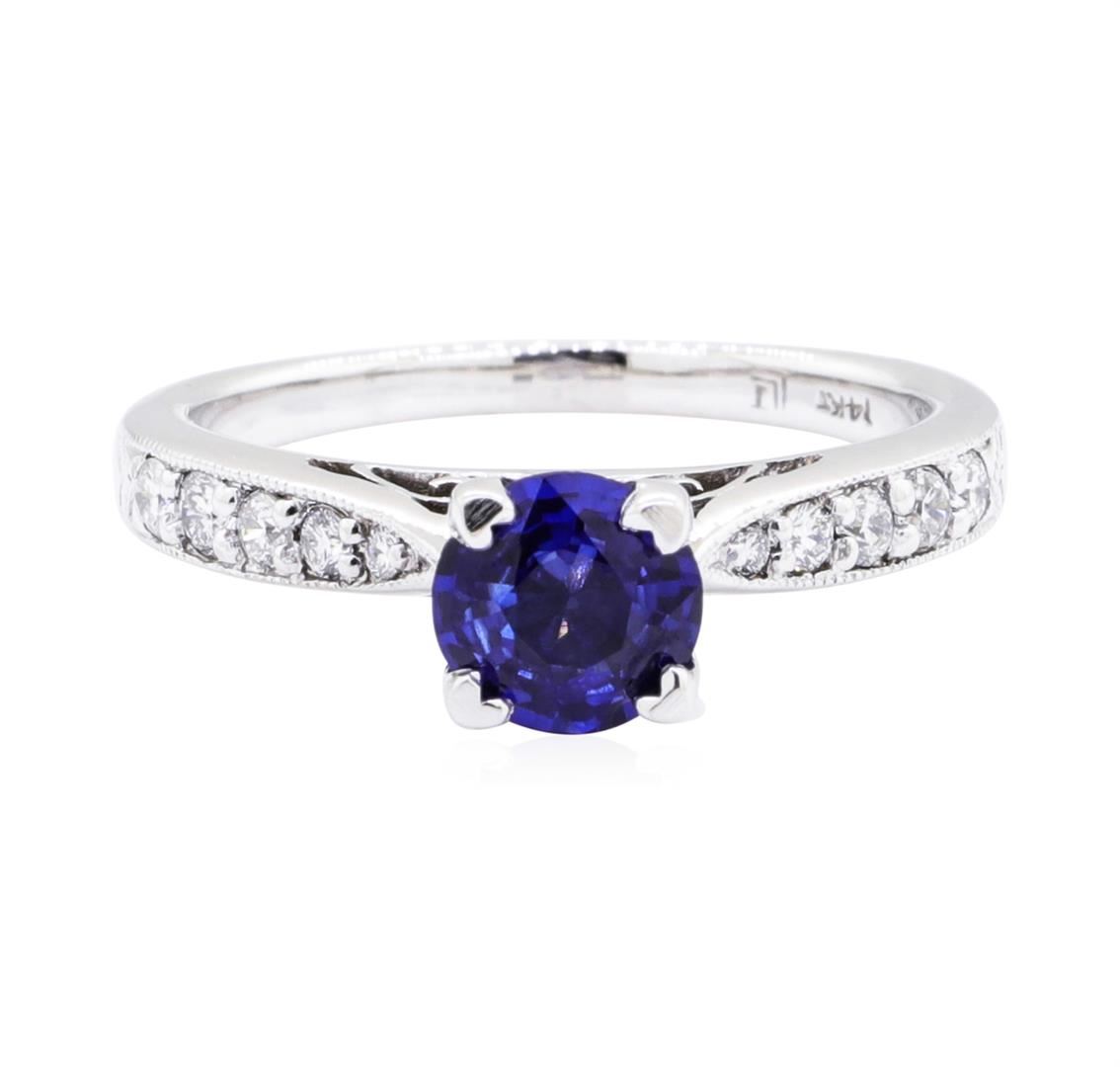 One ring featuring: 14KT white gold weighing 3.1 grams containing one sapphire weighing 0.83ct and diamonds weighing 0.26ctw. The ring is a size 6.5.