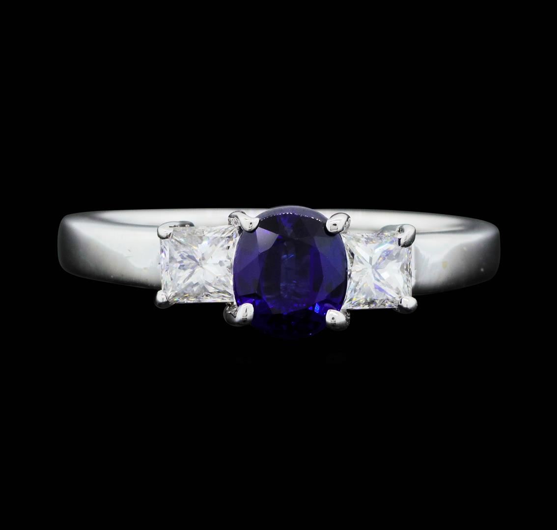 14KT White Gold 0.85 ct. Natural Blue Sapphire and Diamond Ring