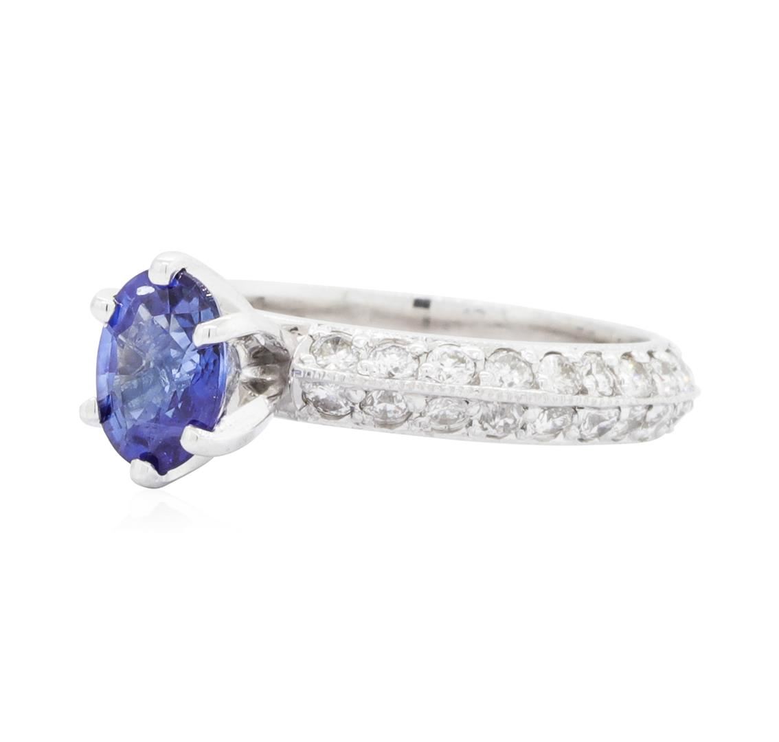 One ring featuring: 14KT white gold weighing 3.4 grams containing one sapphire weighing 0.94ct and diamonds weighing 1.00ctw. The ring is a size 4.5.