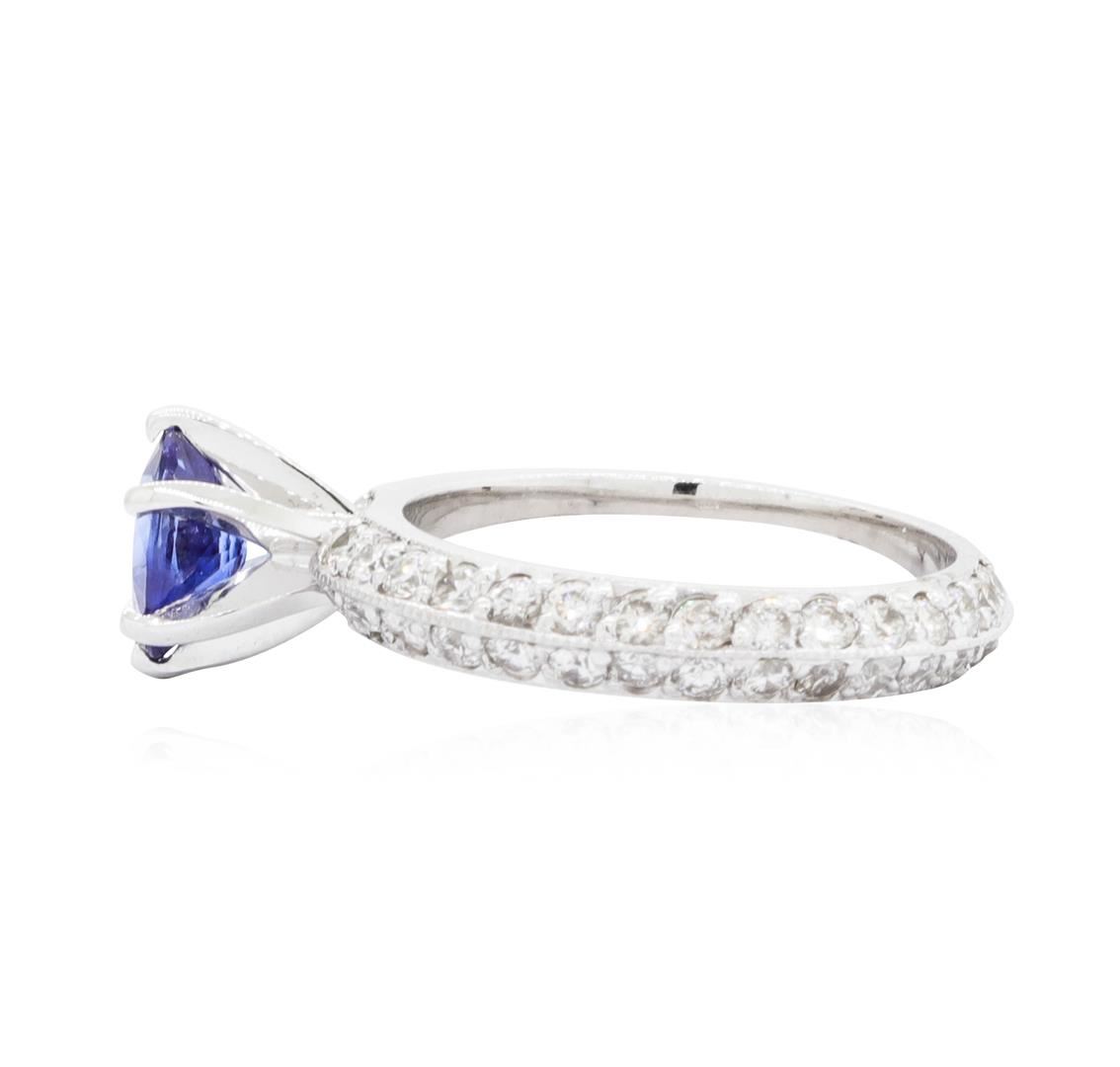 One ring featuring: 14KT white gold weighing 3.4 grams containing one sapphire weighing 0.94ct and diamonds weighing 1.00ctw. The ring is a size 4.5.