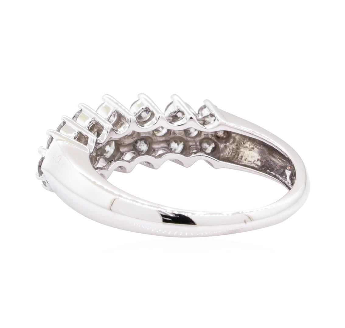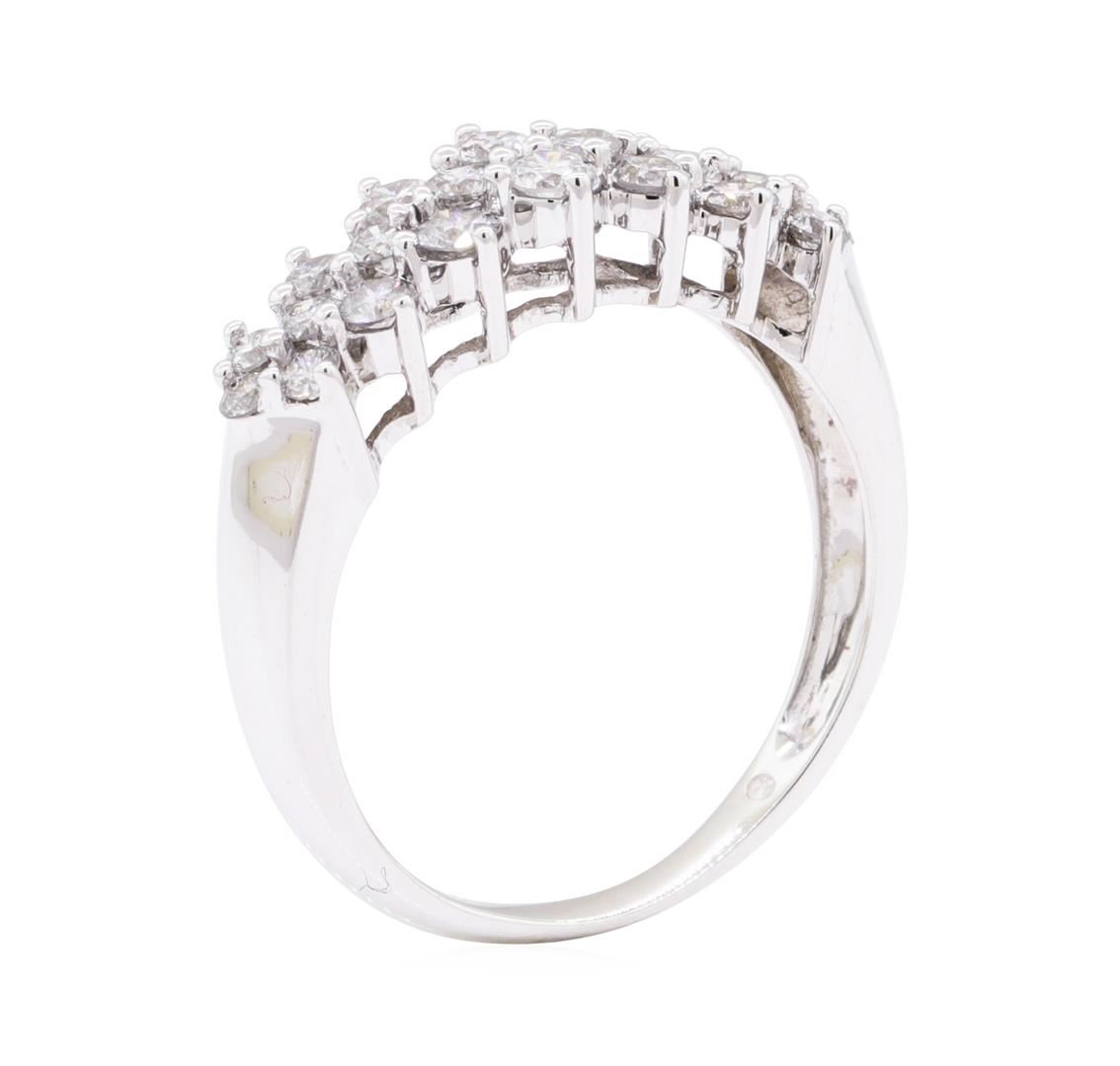 One lady's straight line diamond band featuring: 14KT white gold weighing 3.6 grams containing diamonds weighing 1.00ctw. The ring is a size 8.