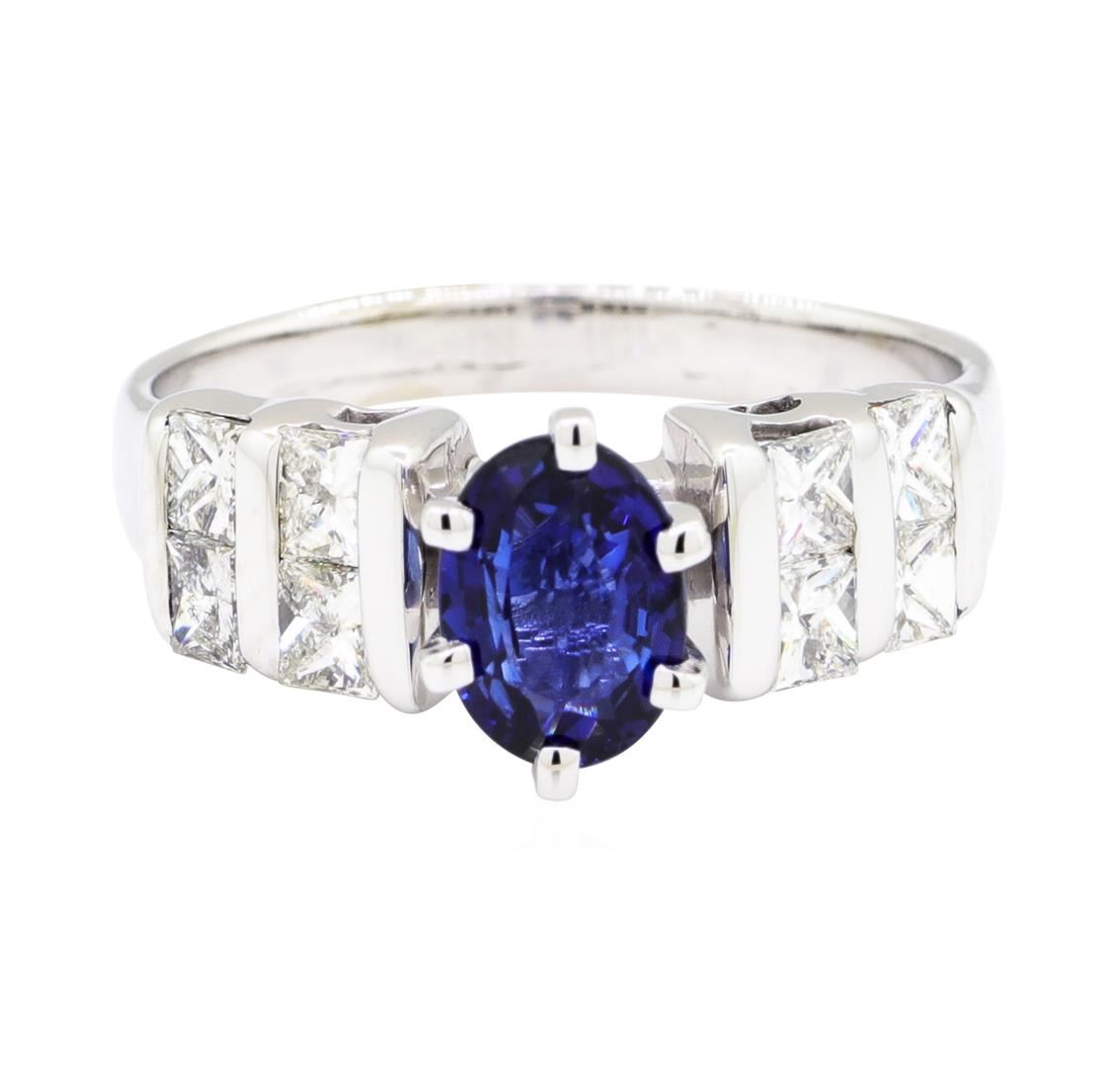 One ring featuring: 14KT white gold weighing 4.5 grams containing one sapphire weighing 1.04ct and diamonds weighing 0.80ctw. The ring is a size 6.5.