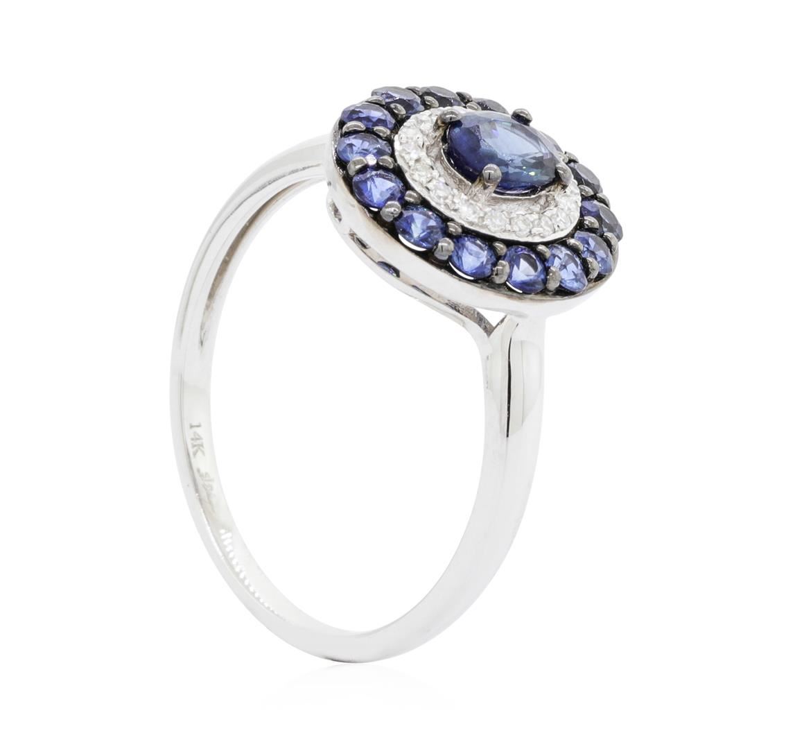 One ring featuring: 14KT white gold weighing 2.6 grams containing sapphires weighing 1.07ctw and diamonds weighing 0.08ctw. The ring is a size 7.