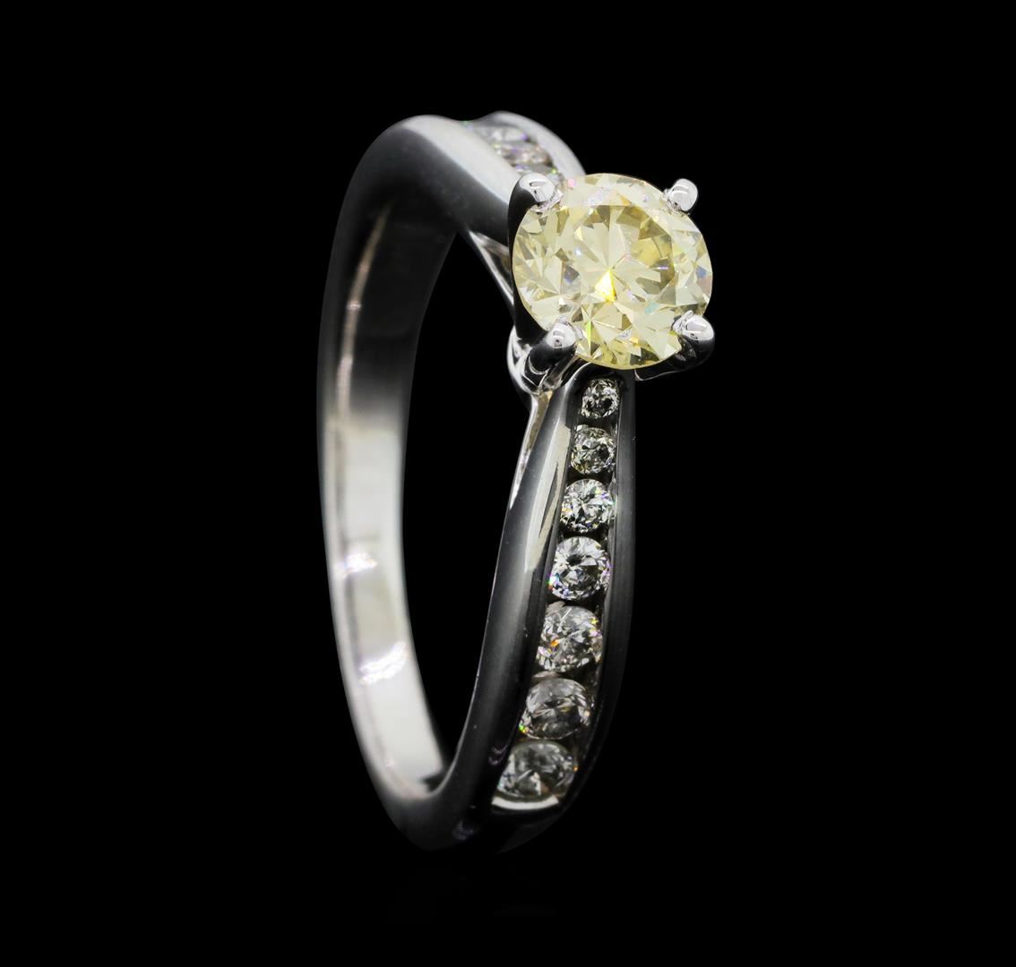 One electronically tested 14KT white gold lady's cast wedding ring with a cathedral channel with a bright polish finish. The featured lady's ring has a shank measuring 2.20 millimeters wide. Identified with markings of "14K". Condition is new, good workmanship. Containing: One prong set old mine cut diamond, measuring 5.82 - 5.78 x 3.80mm (depth est.) approximate weight of 0.78ct. Graded in the setting. Color L - M, Clarity SI-1 Cut Good Eight channel set round brilliant cut diamonds, measuring 2.50 - 1.90 x 1.36mm (depth est.) approximate total weight of 8 Stones = 0.33ct. Graded in the setting. Color H - I Clarity SI-1 to I-1 Cut Good Six channel set round brilliant cut diamonds, measuring 1.50 - 1.30 x 0.87mm (depth est.) approximate total weight of 6 Stones = 0.06ct. Graded in the setting. Color H - I, Clarity SI-1 to I-1 Cut Good. Total Weight of Diamonds 1.17ct. Total Weight of Ring 4.80gm. GAS Appraised.