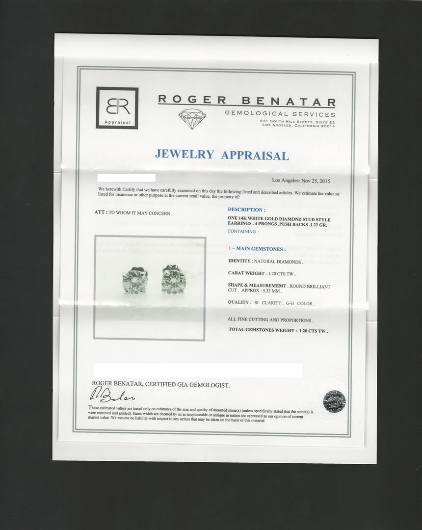 Regarding Appraised Jewelry, Watches and Loose Stones -