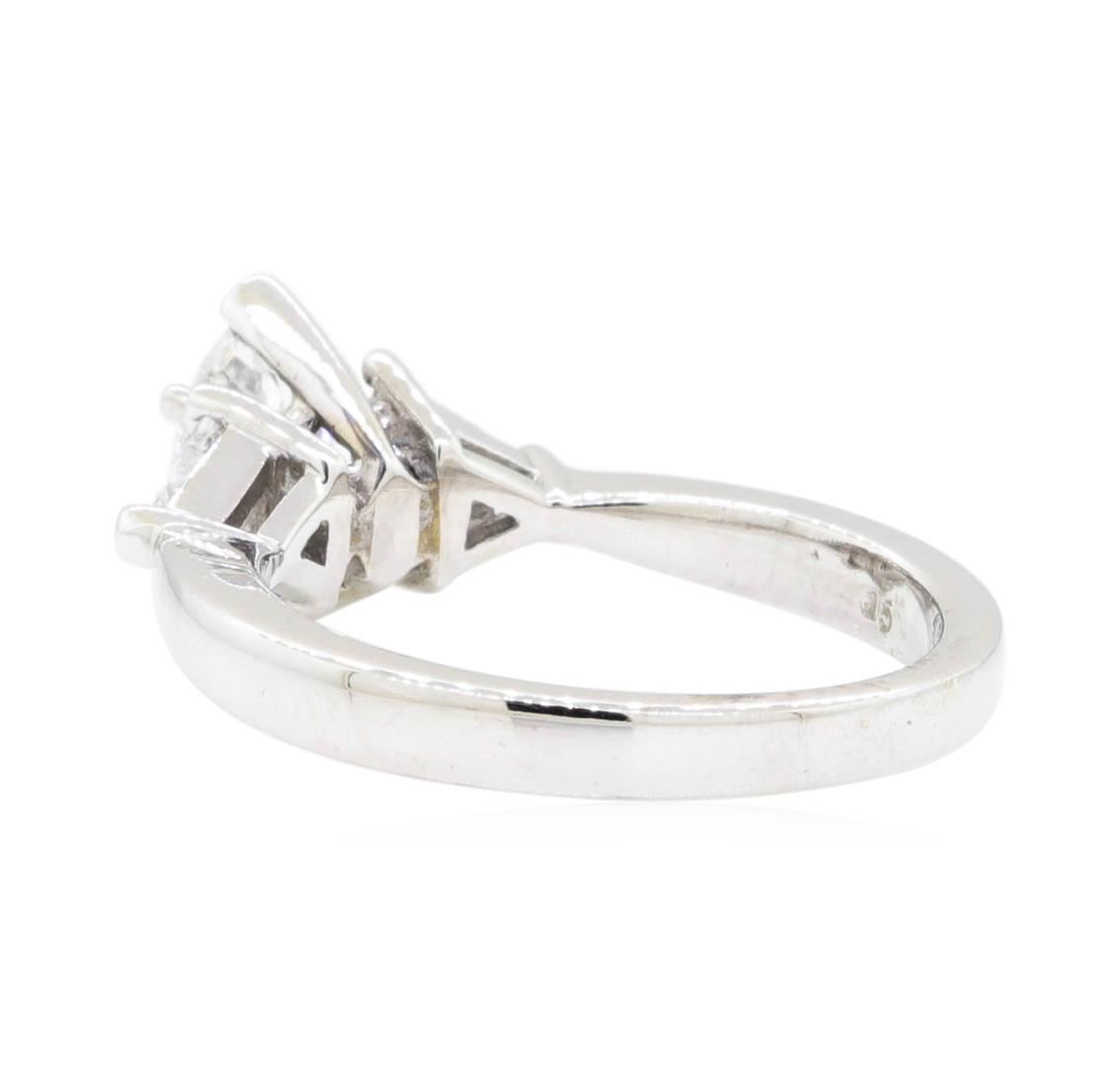 One electronically tested 14KT white gold Ladies cast fashion wedding ring with a three stone cathedral shank with a bright polish finish. The featured Ladies ring has a shank measuring 2.37 millimeters wide. Identified with markings of '14K'. Condition is new, good workmanship. Containing: One prong set marquise shaped cut diamond, measuring 8.60 x 4.90 x 3.00mm (depth est.) approximate weight of 0.70ct. Graded in the setting. Color H - I Clarity SI-2 Cut Good Two prong set triangle brilliant cut diamonds, measuring 4.30 x 4.10 x 2.55mm (depth est.) approximate total weight of 2 Stones = 0.50ct. Graded in the setting. Color H - I Clarity SI-2 to I-1 Cut Good. Total Weight of Diamonds 1.20ct.. Total Weight of Ring 4.30gm. GAS Appraised.