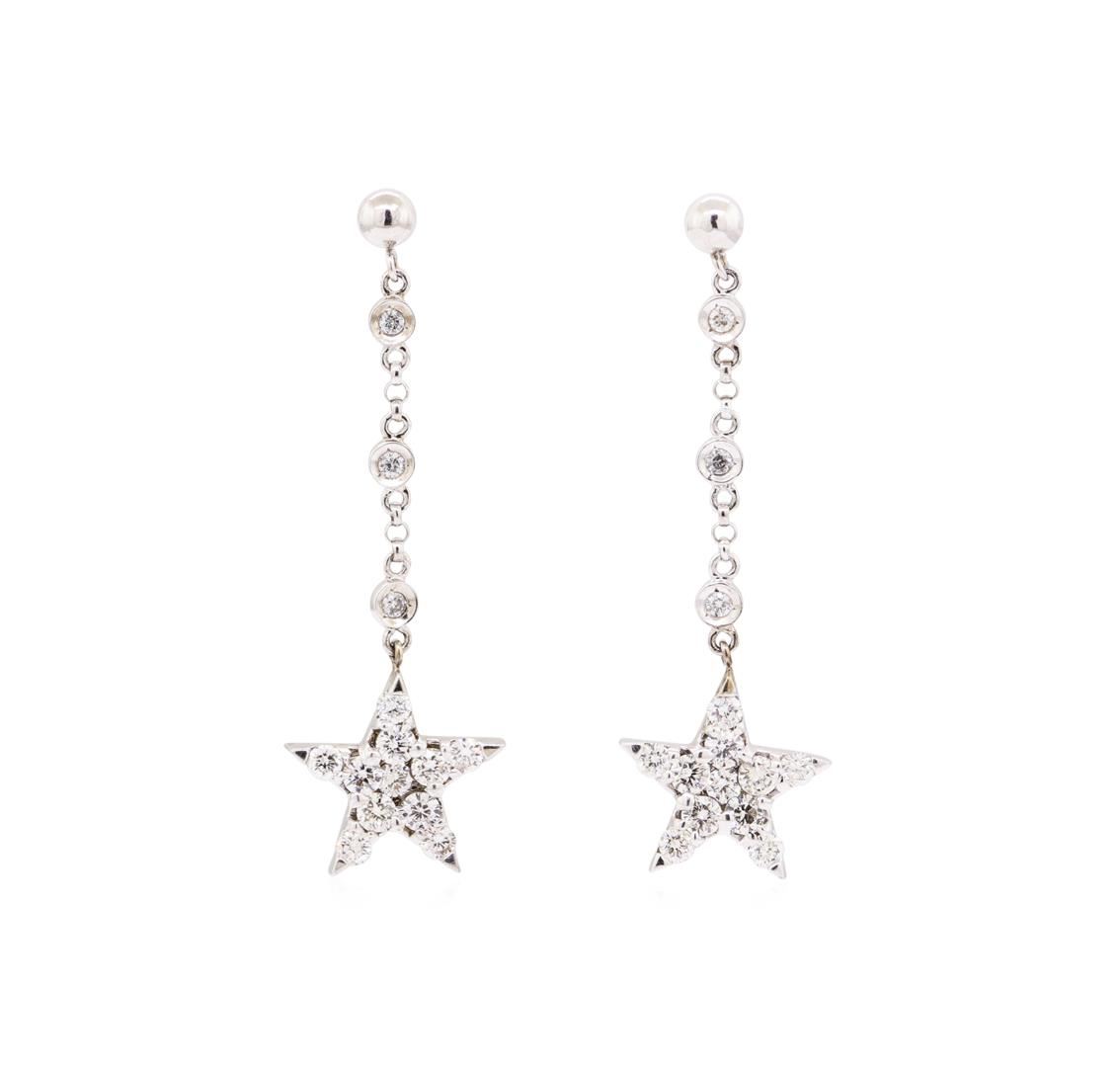 One pair of friction post star dangle earrings featuring: 14KT white gold weighing 4.2 grams containing diamonds weighing 1.20ctw.