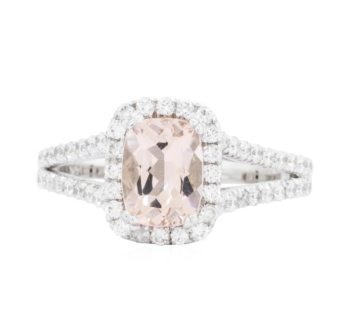 One ring featuring: 14KT white gold weighing 3.7 grams containing one morganite weighing 1.21ct and diamonds weighing 0.60ctw. The ring is a size 7.