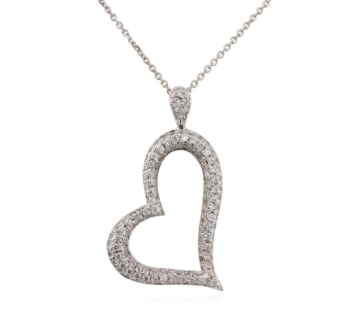 One electronically tested 14KT white gold lady's cast heart shape pendant & chain 18.0" long, 1mm diamond cut cable link with a spring ring clasp with a bright polish finish. Identified with markings of "14K". Condition is new, good workmanship. Containing: One Hundred Thirty prong set round brilliant cut diamonds, measuring 1.40 - 1.30 x 0.86mm (depth est.) approximate total weight of 130 Stones = 1.25ct. Graded in the setting. Clarity: SI-1 to I-1. Color: H - I. Cut Good. Total Weight of Diamonds 1.25ct. Total Weight of Pendant & Chain 5.90gm. GAS Appraised at $4,375.00.