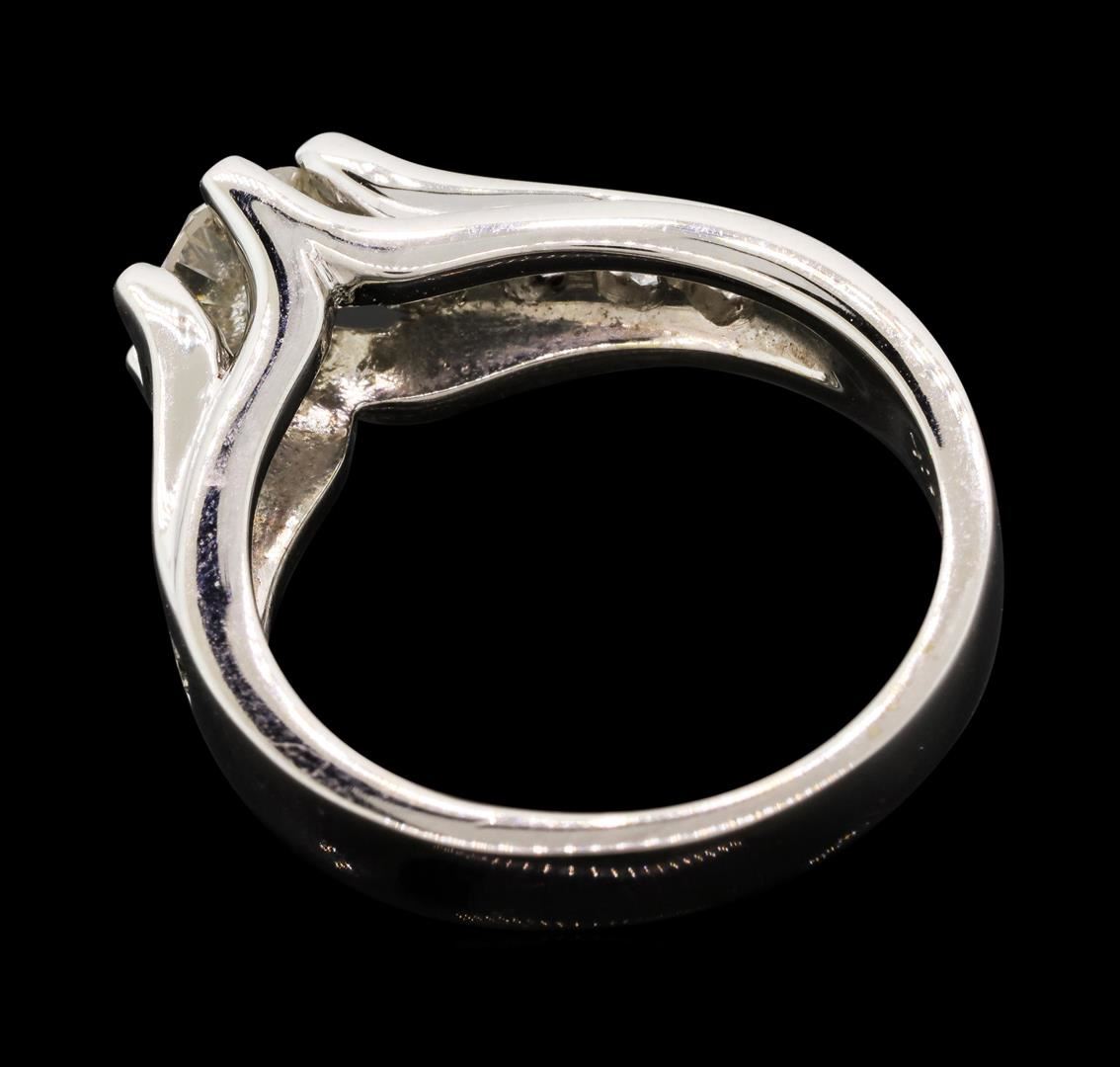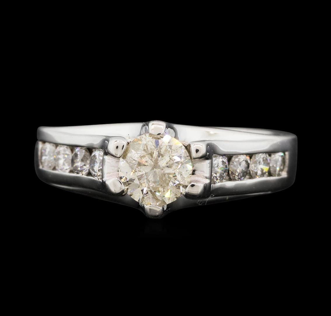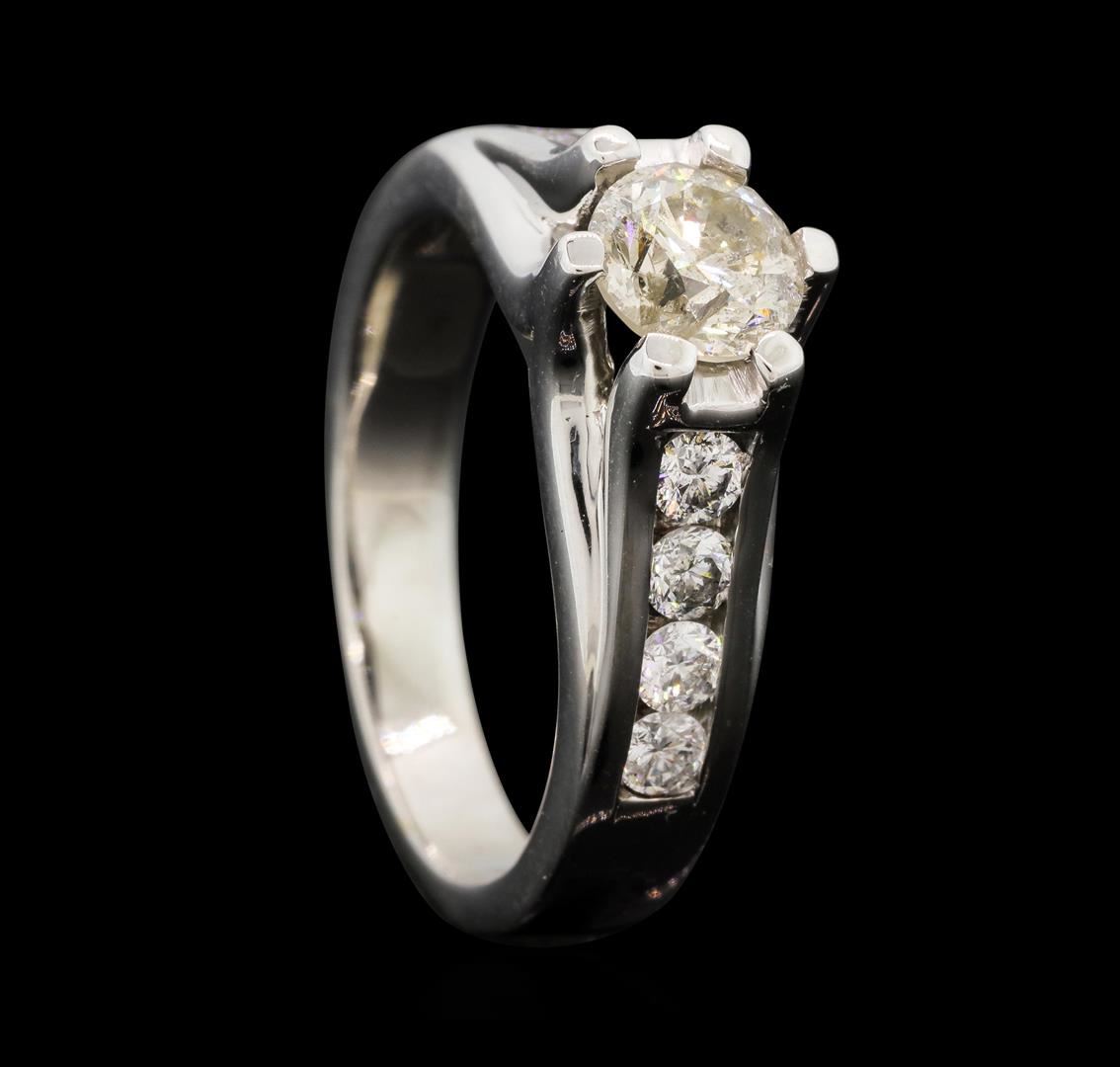 One electronically tested 14KT white gold lady's cast wedding ring with a cathedral channel with a bright polish finish. The featured lady's ring has a shank measuring 3.24 millimeters wide. Identified with markings of "14K". Condition is new, good workmanship. Containing: One prong set round brilliant cut diamond, measuring 5.75 - 5.72 x 3.75mm (depth est.) , 5.00.%. GTCF approximate weight of 0.81ct. Graded in the setting. Color J - K Clarity I-1 Cut Good Eight channel set round brilliant cut diamonds, measuring 2.60 - 2.50 x 1.58mm (depth est.) approximate. Total Weight of 8 Stones = 0.50ct. Graded in the setting. Color H - I Clarity SI-1 to I-1 Cut Good. Total Weight of Diamonds 1.31ct.. Total Weight of Ring 6.20gm. GAS Appraised.
