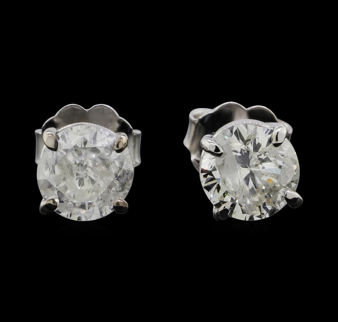 One pair of 14KT White Gold 1.38ctw Diamond Earrings. Clarity is I-2 and the color is I-J.