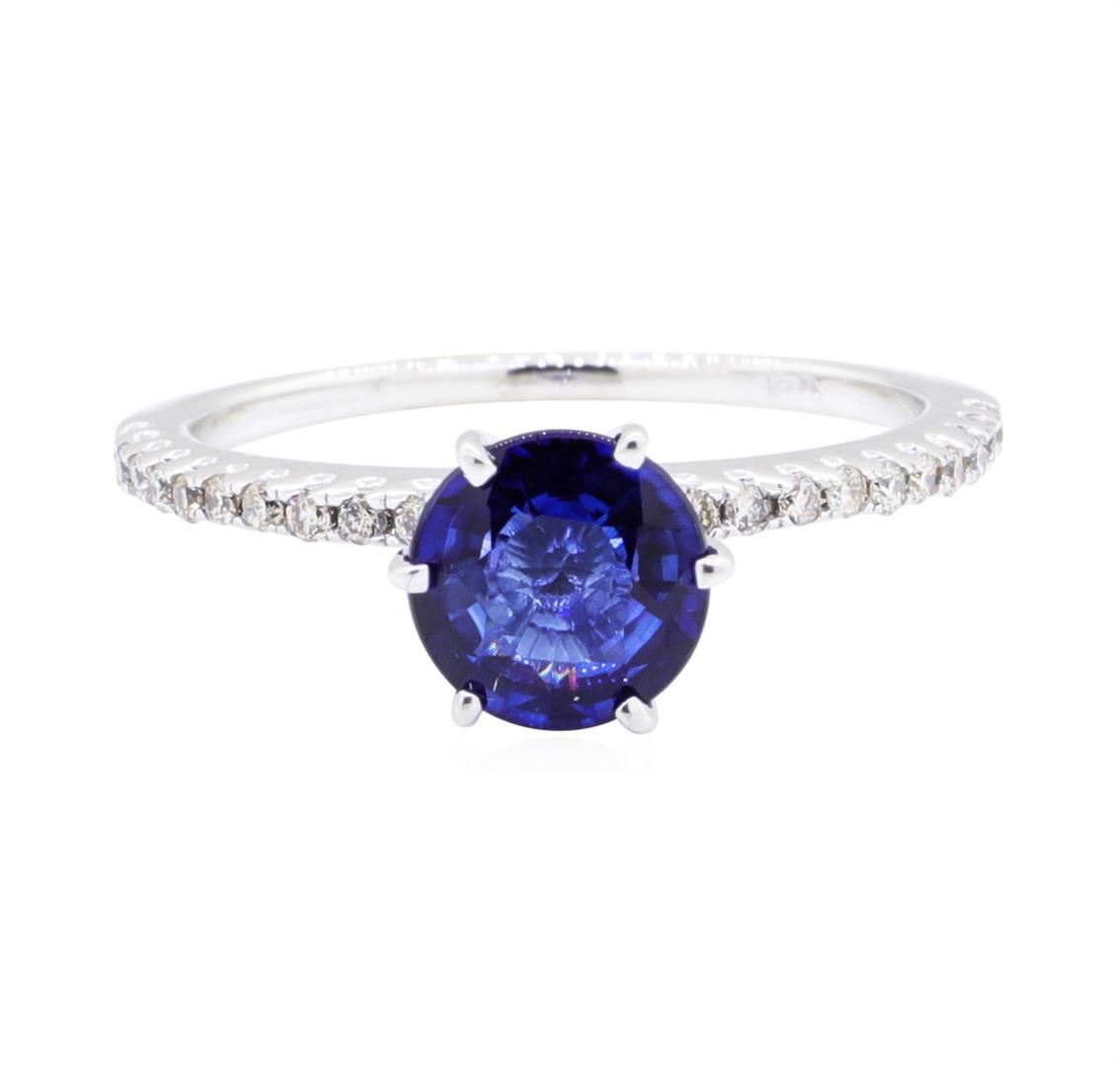 One ring featuring: 14KT white gold weighing 2.2 grams containing one sapphire weighing 1.43ct and diamonds weighing 0.20ctw. The ring is a size 6.