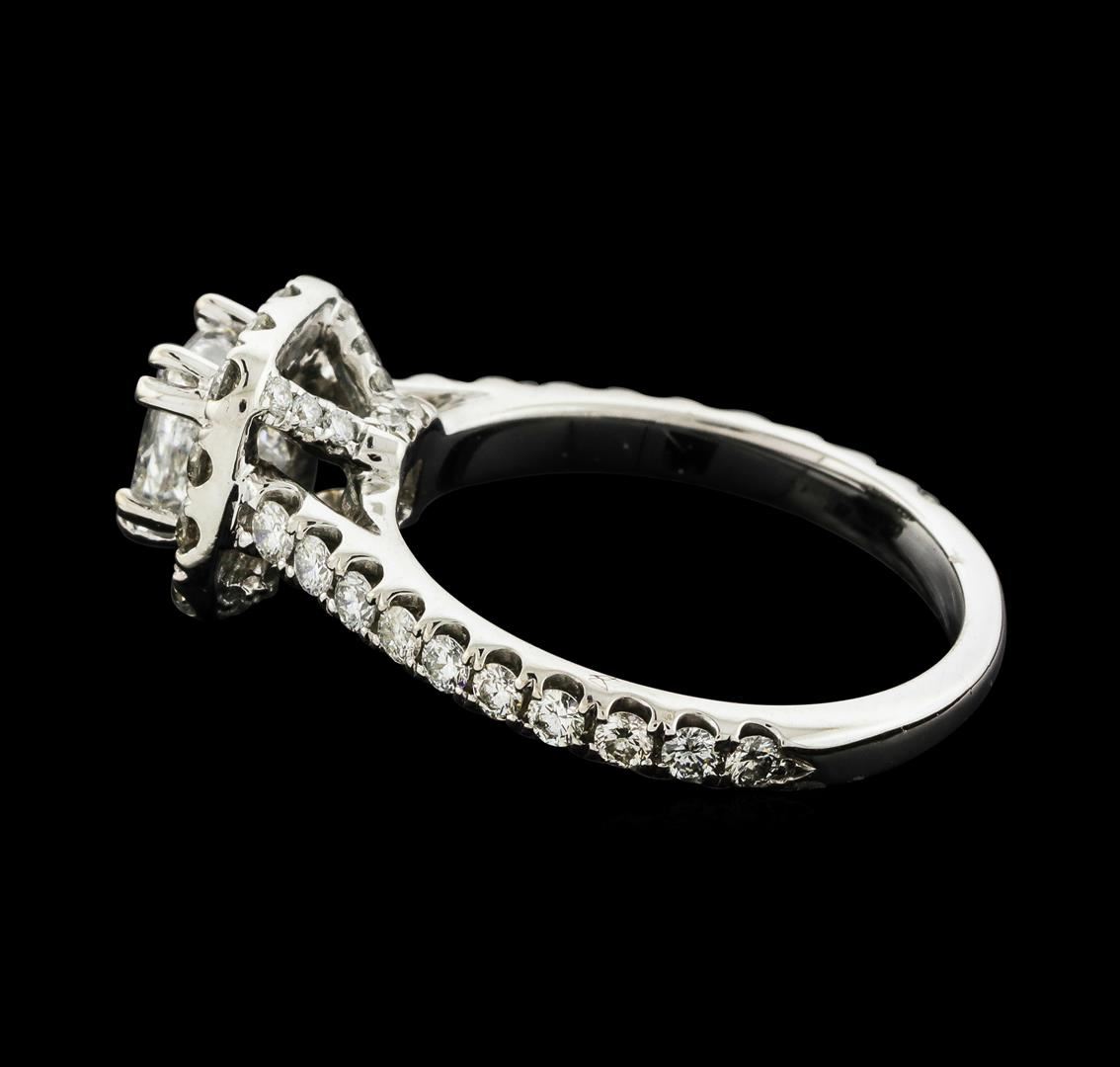 One electronically tested 14KT white gold lady's cast wedding ring with a cathedral halo with a bright polish finish. The featured lady's ring has a shank measuring 2.08 millimeters wide. Trademark is Neil Lane. Identified with markings of "14K". Condition is new, good workmanship. Containing: One prong set princess cut diamond, measuring 5.15 x 4.80 x 3.95mm (depth est.) approximate weight of 0.80ct. Graded in the setting. Clarity: I-1. Color: HCut Very Good Thirty-Two prong set round brilliant cut diamonds, measuring 1.80 - 1.70 x 1.09mm (depth est.) approximate total weight of 32 Stones = 0.65ct. Graded in the setting. Clarity: SI-1 to SI-2. Color: H - ICut Good Sixteen prong set round brilliant cut diamonds, measuring 1.20 - 1.10 x 0.71mm (depth est.) approximate total weight of 16 Stones = 0.09ct. Graded in the setting. Clarity: VS-2 to SI-1. Color: G - HCut Good. Total Weight of Diamonds 1.54ct. Total Weight of Ring 3.60gm. GAS Appraised.