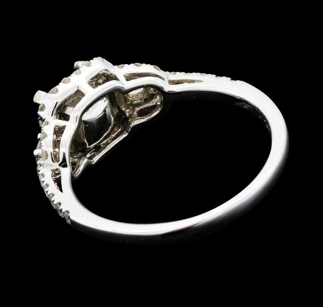 One electronically tested 14KT white gold ladies cast diamond ring with a bright polish finish. The featured diamond is set within a diamond bezel supported by elaborate diamond set shoulders, completed by a two millimeter wide band. Trademark is Orianne. Identified with markings of "14K". Condition is new, good workmanship. Containing: One prong set princess cut diamond, measuring 5.10 x 5.00 x 4.20mm (depth est.), 15.00.%. GTCF approximate weight of 1.13ct. Graded in the setting. Clarity: I-1. Depth: 84.0%. Table 70.0%. Forty-Six prong set round brilliant cut diamonds (depth est.) approximate total weight of 46 Stones = 0.52ct. Graded in the setting. Clarity: I-2 to I-3. Color: G - I. Total Weight of Diamonds 1.65ct. Total Weight of Ring 3.30gm. AIG Appraised.