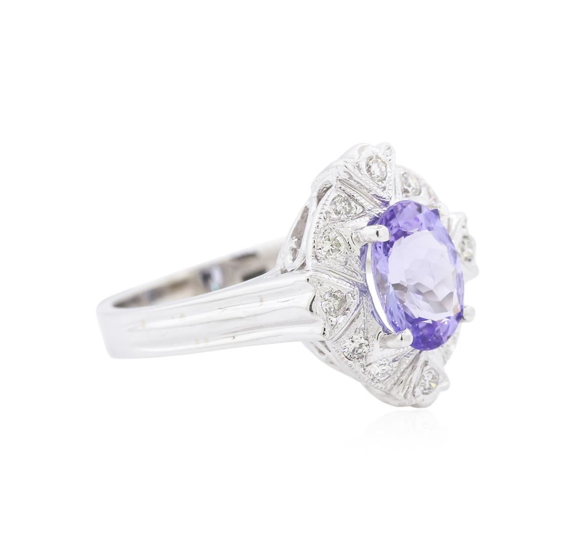 One ring featuring: 14KT white gold weighing 4.60 grams containing one tanzanite center stone with a total weight of 1.67ct and 12 diamonds with a total weight of 0.23ct.
