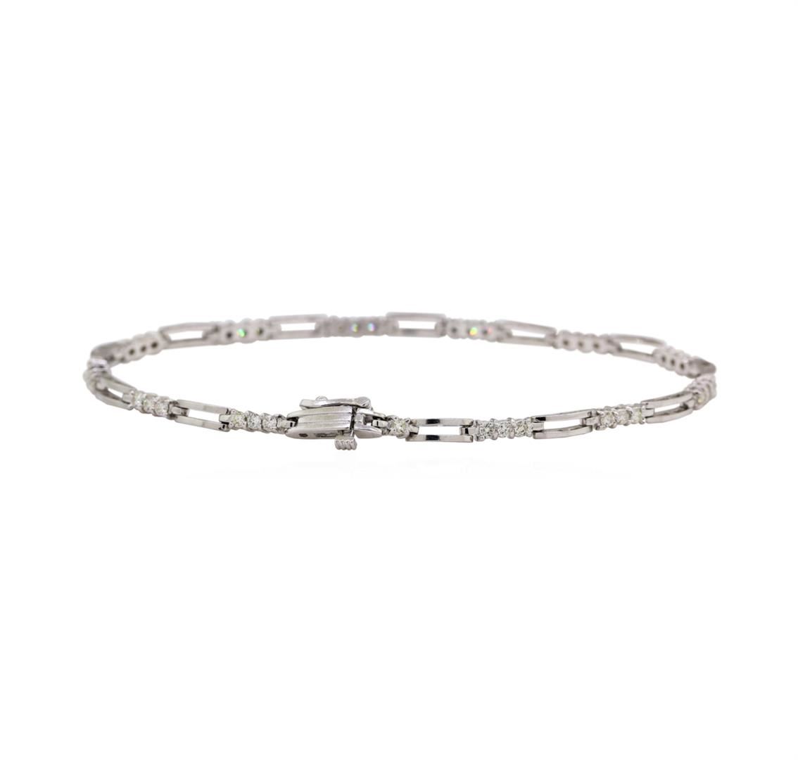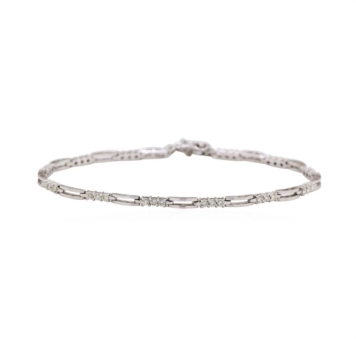 One electronically tested 14KT white gold lady's combination cast & assembled fashion tennis bracelet with a tongue clasp & foldover safety with a bright polish finish. The featured lady's bracelet measures approximately 9 inches in length. Identified with markings of '14K'. Condition is new, good workmanship. Containing: Thirty-Seven prong set round brilliant cut diamonds, measuring 2.30 - 2.25 x 1.41mm (depth est.) approximate total weight of 37 Stones = 1.75ct. Graded in the setting. Color H - J Clarity SI-1 to I-1 Cut Good. Total Weight of Diamonds 1.75ct. Total Weight of Bracelet 12.80gm. GAS Appraised.
