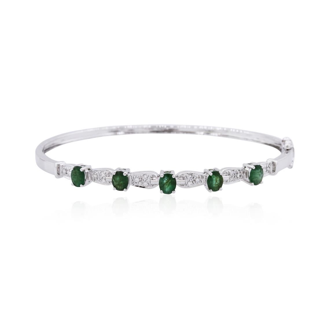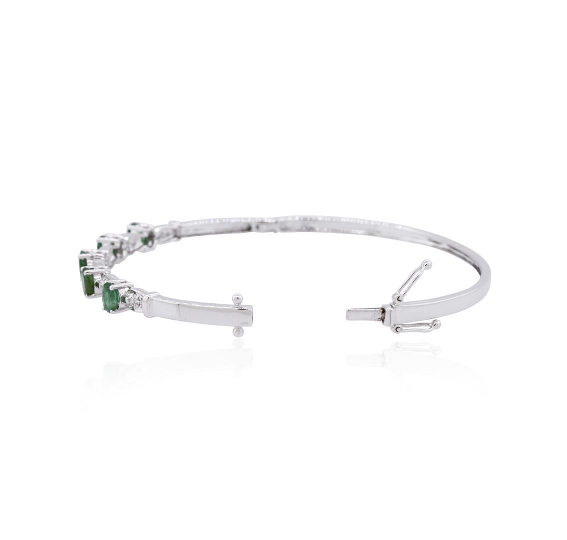 14KT White Gold 1.75ctw Emerald and Diamond Bangle Bracelet
