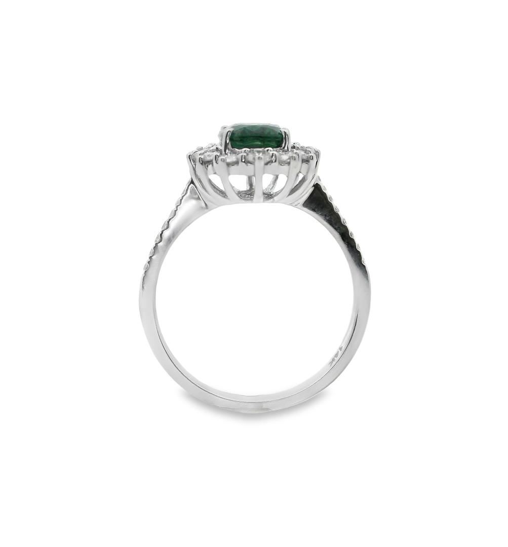 One electronically tested 14KT white gold lady's combination cast & assembled fashion oval halo ring with a basket motif with a bright polish finish. Condition is new, good workmanship. The featured lady's ring has a shank measuring 2.0 millimeters. Ident GAS Appraised.