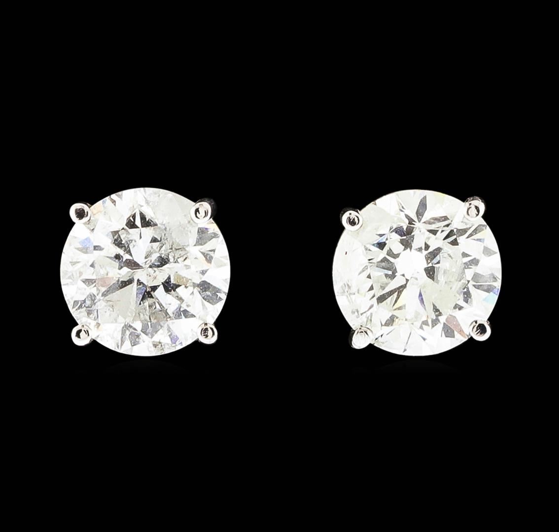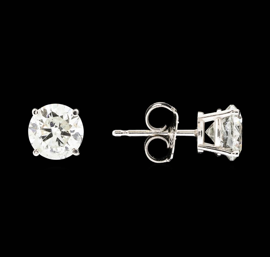 One pair of 14KT White Gold 1.90ctw Diamond Earrings. (2) round brilliant cust diamond each weighing 0.95cts with a color of (G-H) and clarity of I-2. Total Weight of the earrings is 1.2 grams. IGI Appraised at $5,485.00.