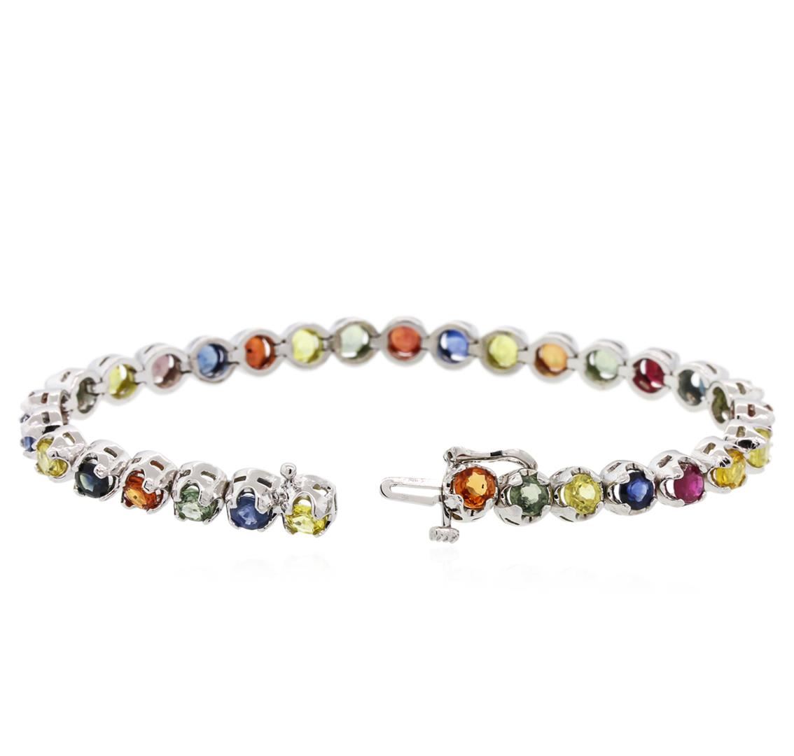 One bracelet featuring: 14KT white gold weighing 16.31 grams containing 33 multi color sapphire with a total weight of 11.30ct.
