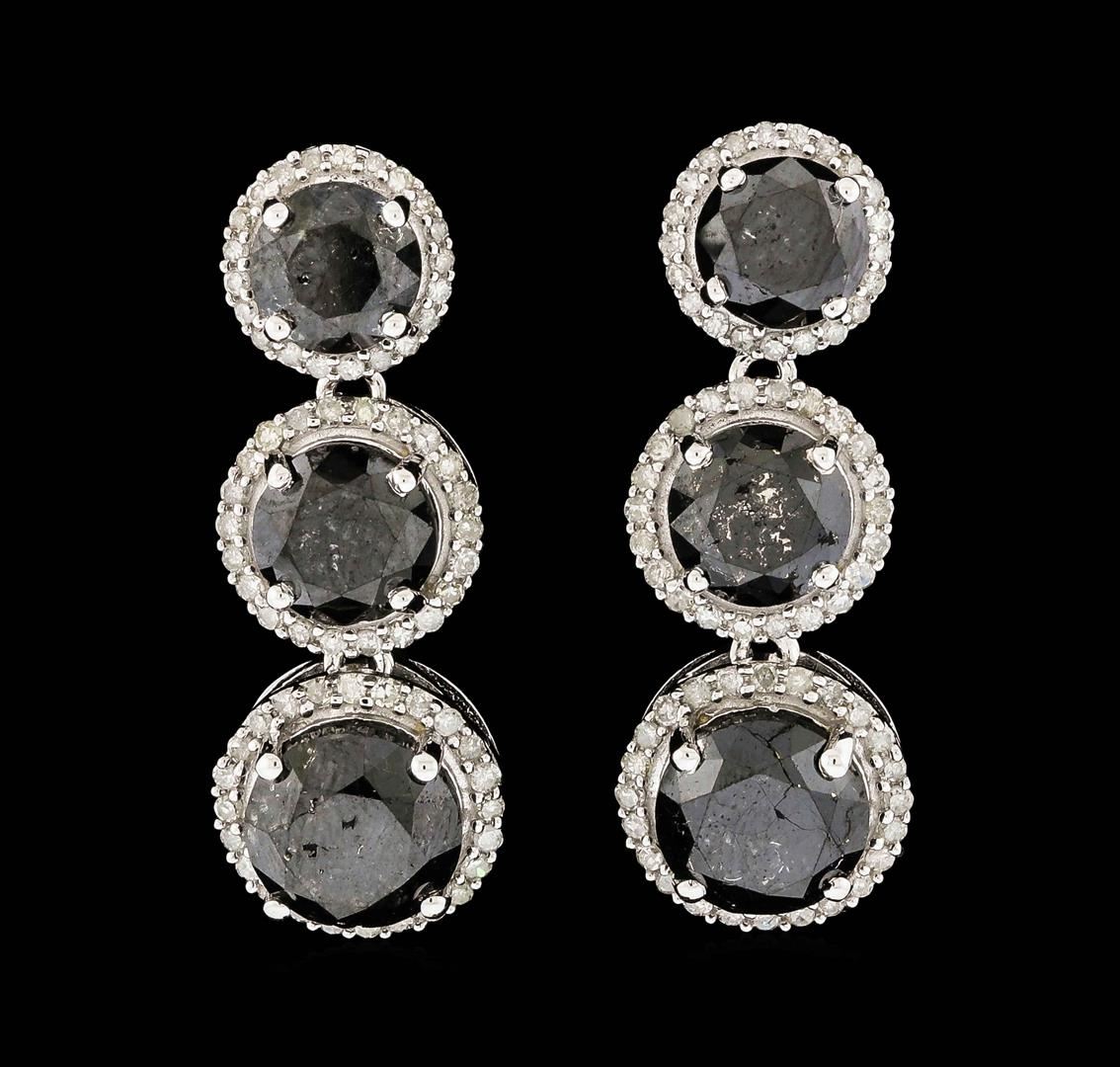 One pair electronically tested 14KT white gold cast & assembled diamond solitaire earrings with screw backs. Bright polish finish. Condition is new, good workmanship. Containing: One prong set round brilliant cut diamond, measuring 5.90 - 5.90 x 4.00mm (depth est.) approximate weight of 0.91ct with a medium blue fluorescence. Graded in the setting. Clarity: I-2. Color: FDepth 67.8%. Table 54.2%. One prong set round brilliant cut diamond, measuring 6.00 - 6.00 x 4.00mm (depth est.), 5.00.%. GTCF approximate weight of 1.01ct with a strong blue fluorescence. Graded in the setting. Clarity: I-1. Color: GDepth 66.7%. Table 55.0%. Total Weight of Diamonds 1.92ct. Total Weight of Earrings 1.15gm. AIG Appraised at $11,755.00.