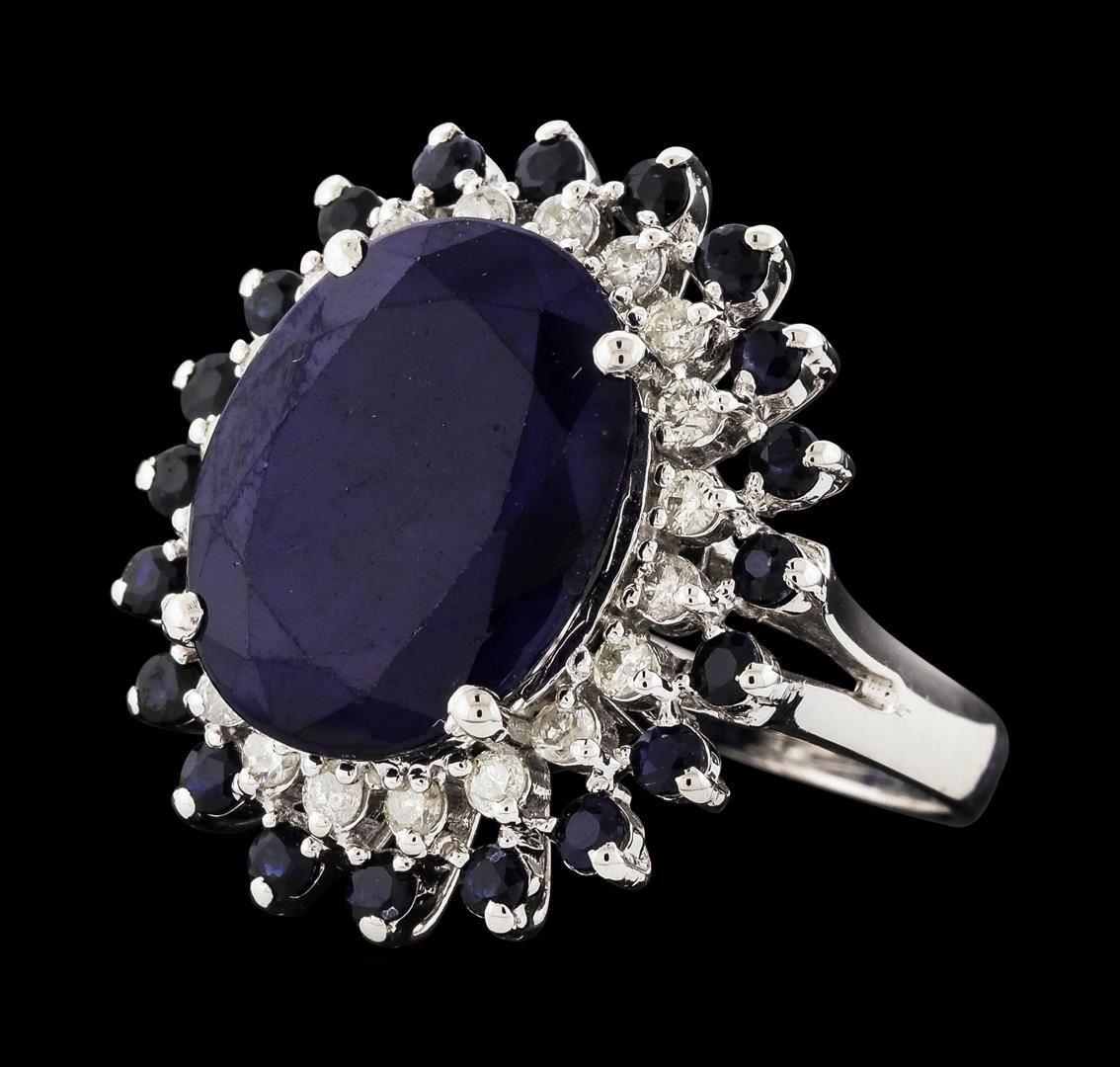 One polished, stamped, and tested 14K white gold ring mounted with: 21 faceted sapphires weighing approximately 12.83 carats, and 20 faceted round diamonds weighing approximately 0.54 carats. This item weighs 10. I grams, condition is new, very good workmanship. 20 diamonds with a total weight of 0.54cts with a clarity of (SI2-I1) and a color of (I-J). Total weight of the ring is 10.1 grams. AIGL Appraised.