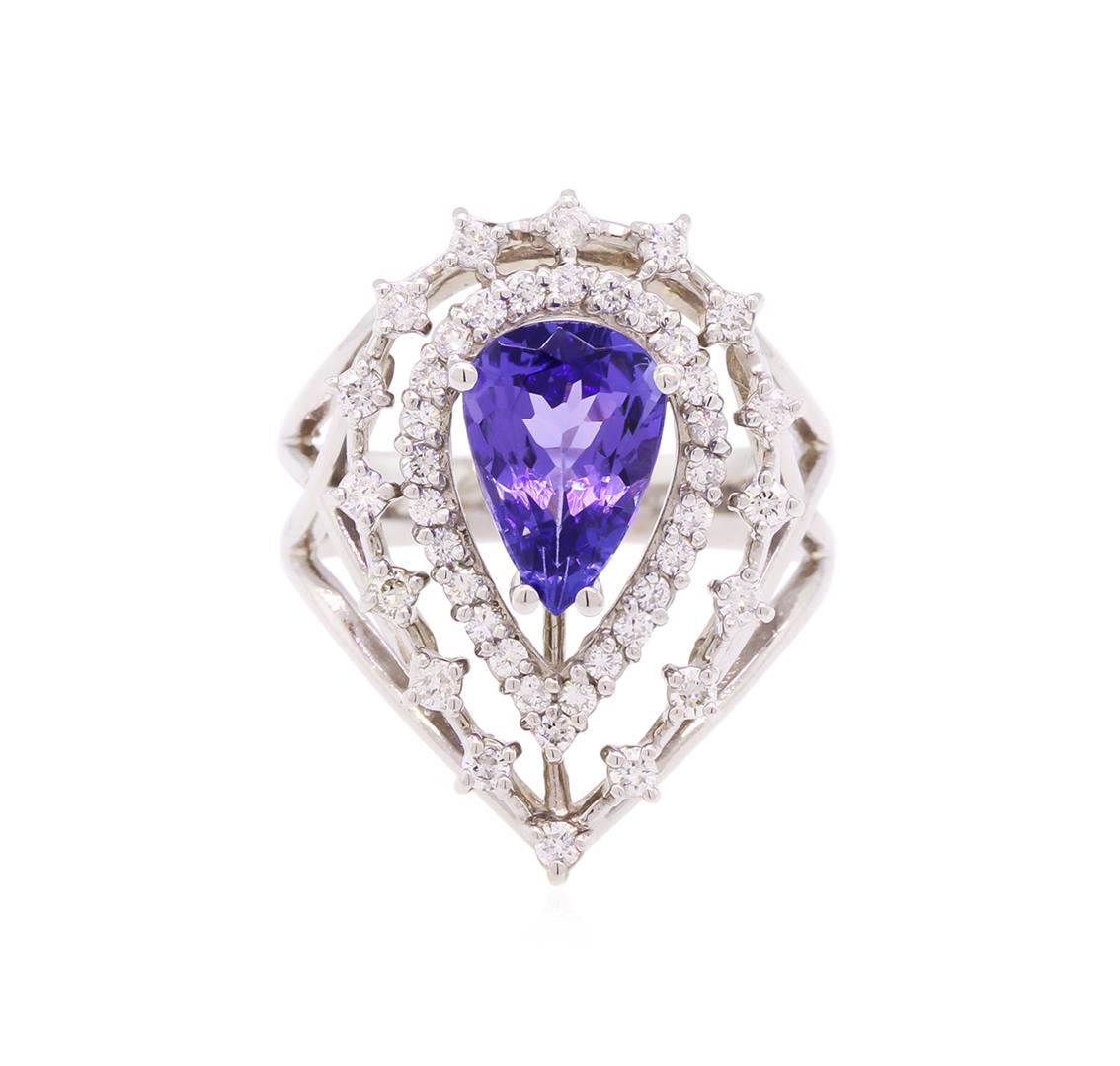 One ring featuring: 14KT white gold weighing 6.4 grams containing one tanzanite with a total weight of 2.01ct and 42 diamonds with a total weight of 0.54ct.