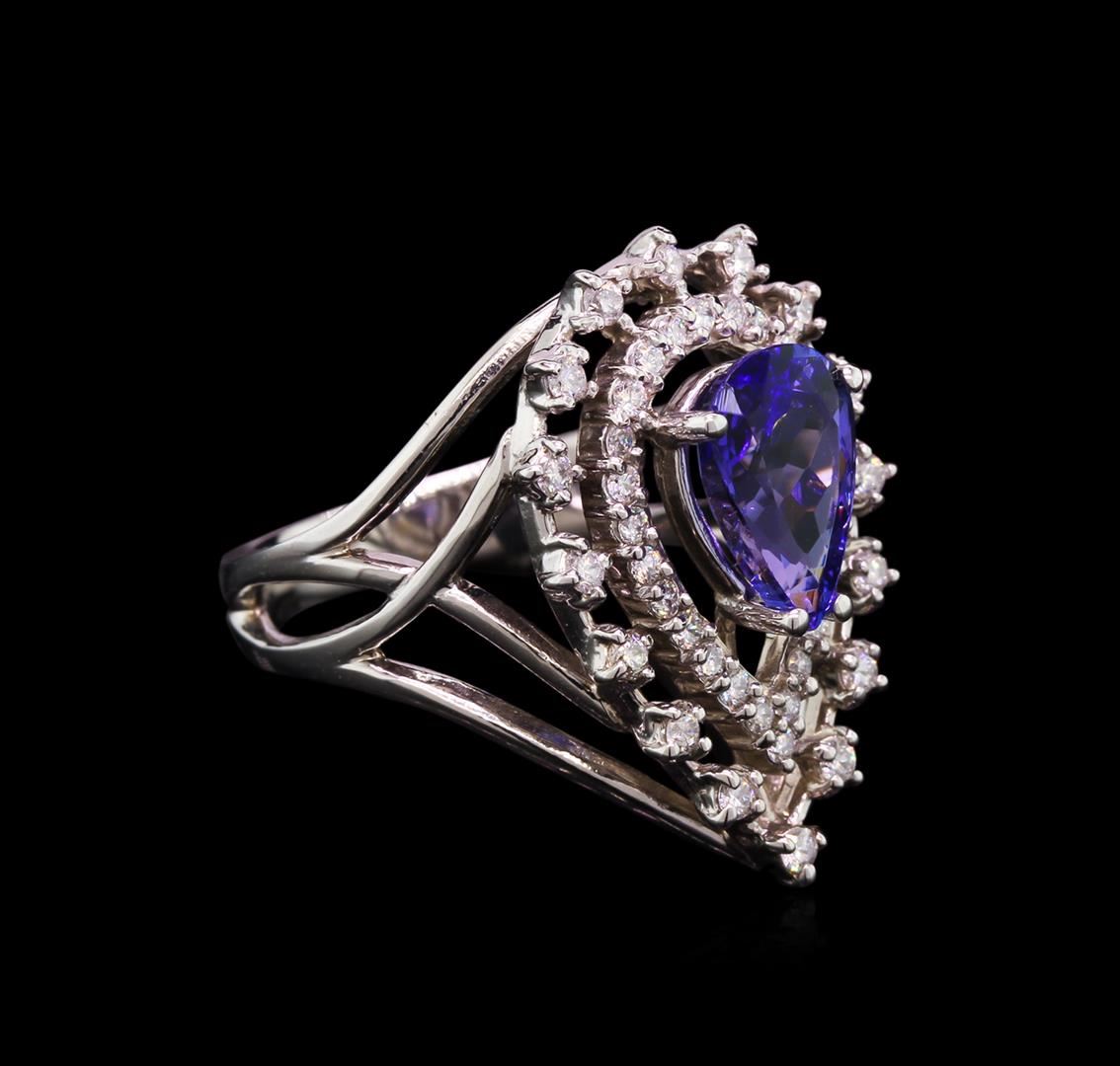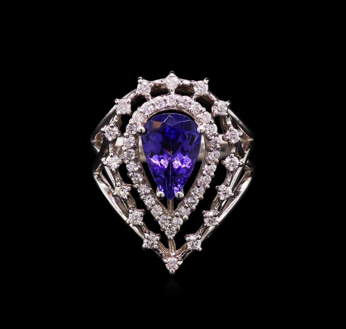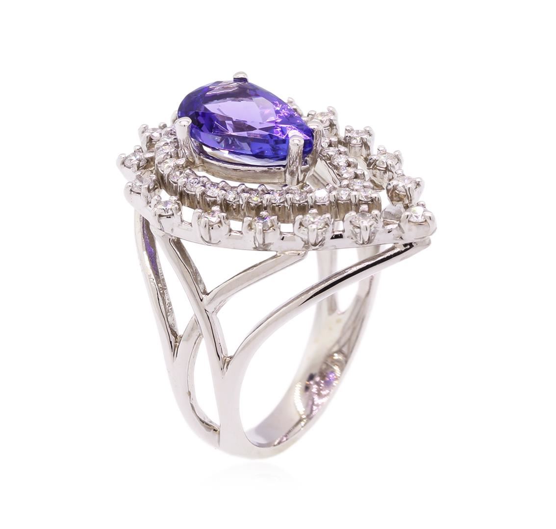 One ring featuring: 14KT white gold weighing 6.4 grams containing one tanzanite with a total weight of 2.01ct and 42 diamonds with a total weight of 0.54ct.