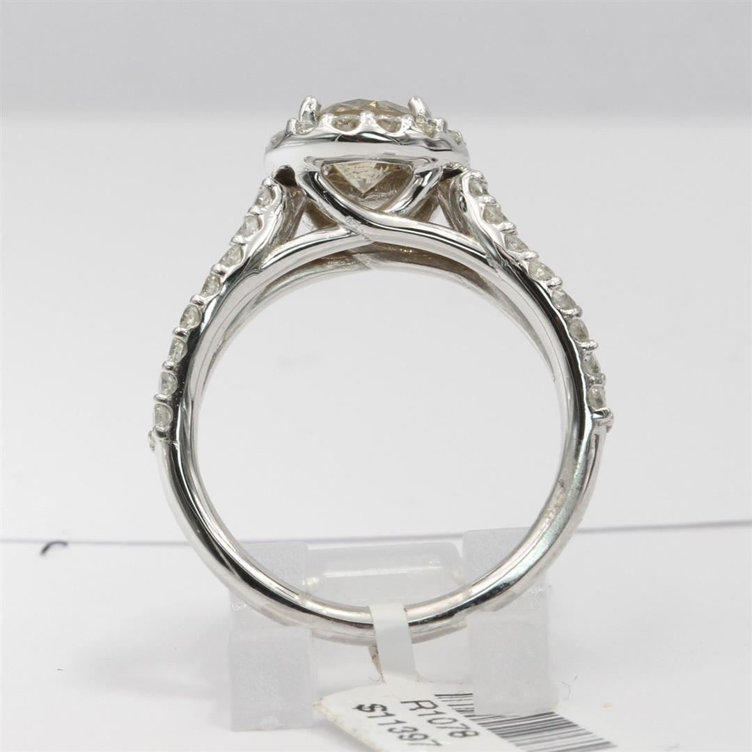 One Natural Round Cut Diamond Engagement Wedding Ring in 14k White Gold. Total carat weight is 2.03 carats. Gross weight is 4.95 grams with a total of 47 diamonds. Condition is brand new. Size is 6.50 but can be resized free of charge. Main stone is non-enhanced and natural. Main diamond carat is 1.04 carats, shape brilliant round cut, clarity SI-2, color natural fancy brown / cognac, and cut is excellent. Side diamond is non-enhanced / natural with a total of 0.99 carats. Side diamond shape is brilliant round cut, clarity SI, color G-H, cut excellent, with a total of 46 diamonds.