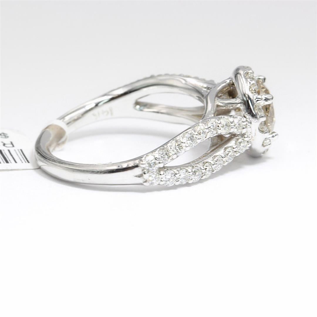 One Natural Round Cut Diamond Engagement Wedding Ring in 14k White Gold. Total carat weight is 2.03 carats. Gross weight is 4.95 grams with a total of 47 diamonds. Condition is brand new. Size is 6.50 but can be resized free of charge. Main stone is non-enhanced and natural. Main diamond carat is 1.04 carats, shape brilliant round cut, clarity SI-2, color natural fancy brown / cognac, and cut is excellent. Side diamond is non-enhanced / natural with a total of 0.99 carats. Side diamond shape is brilliant round cut, clarity SI, color G-H, cut excellent, with a total of 46 diamonds.
