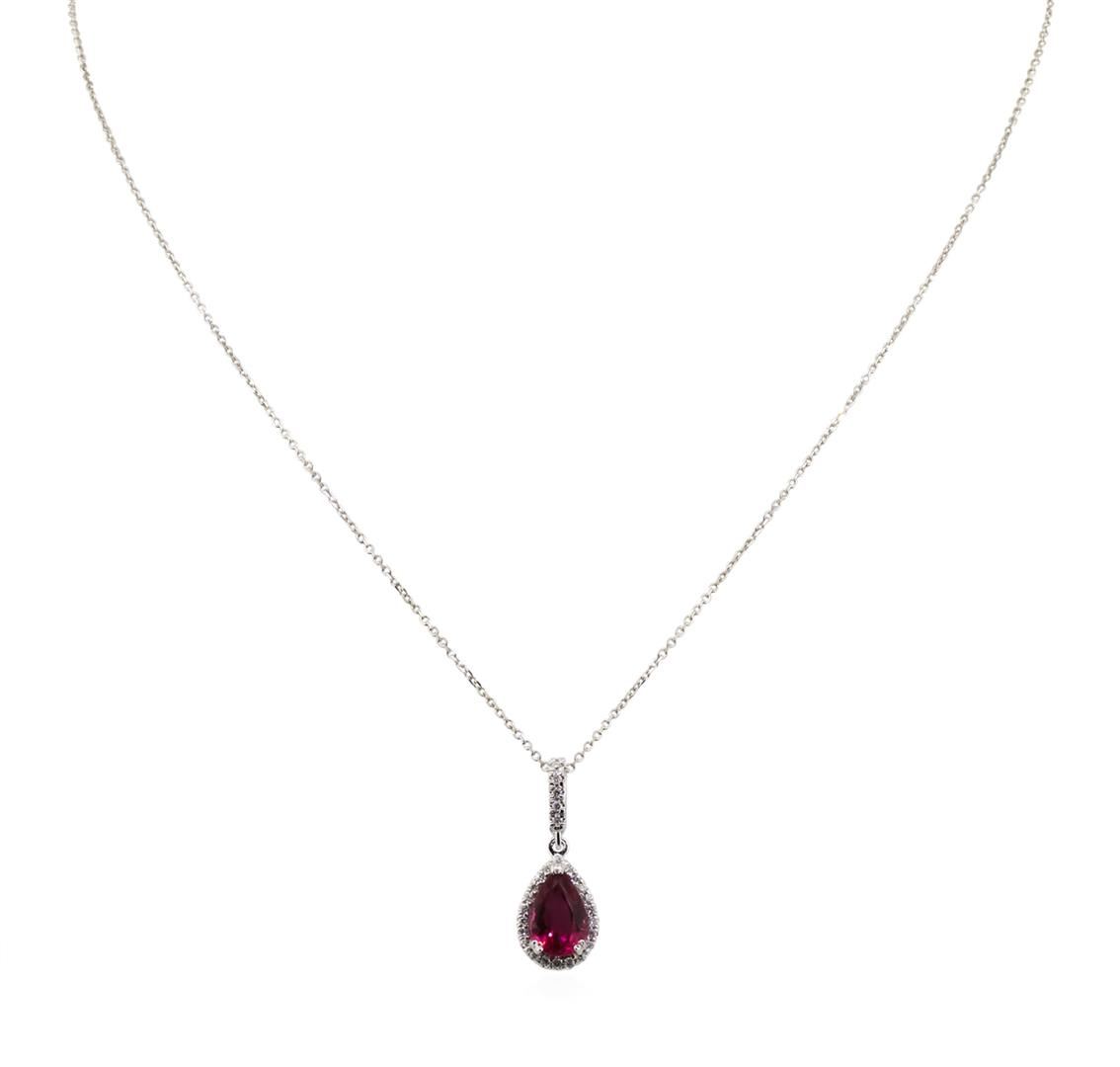 14KT White Gold 2.50ct Pink Tourmaline and Diamond Pendant With Chain