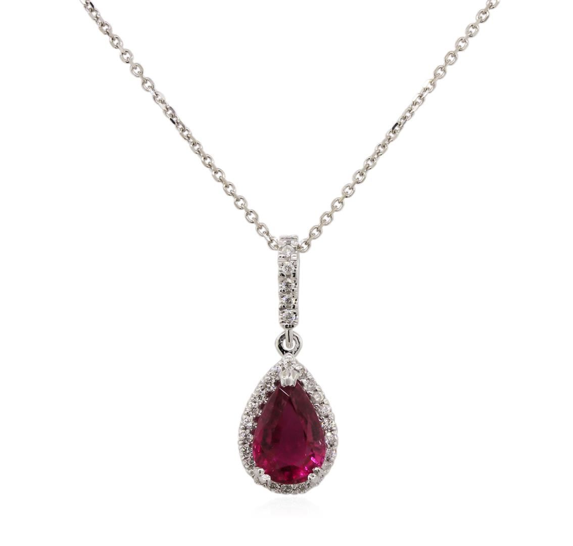 14KT White Gold 2.50ct Pink Tourmaline and Diamond Pendant With Chain