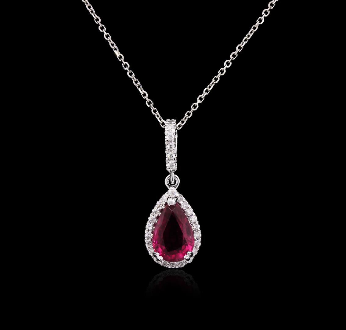 14KT White Gold 2.50ct Pink Tourmaline and Diamond Pendant With Chain