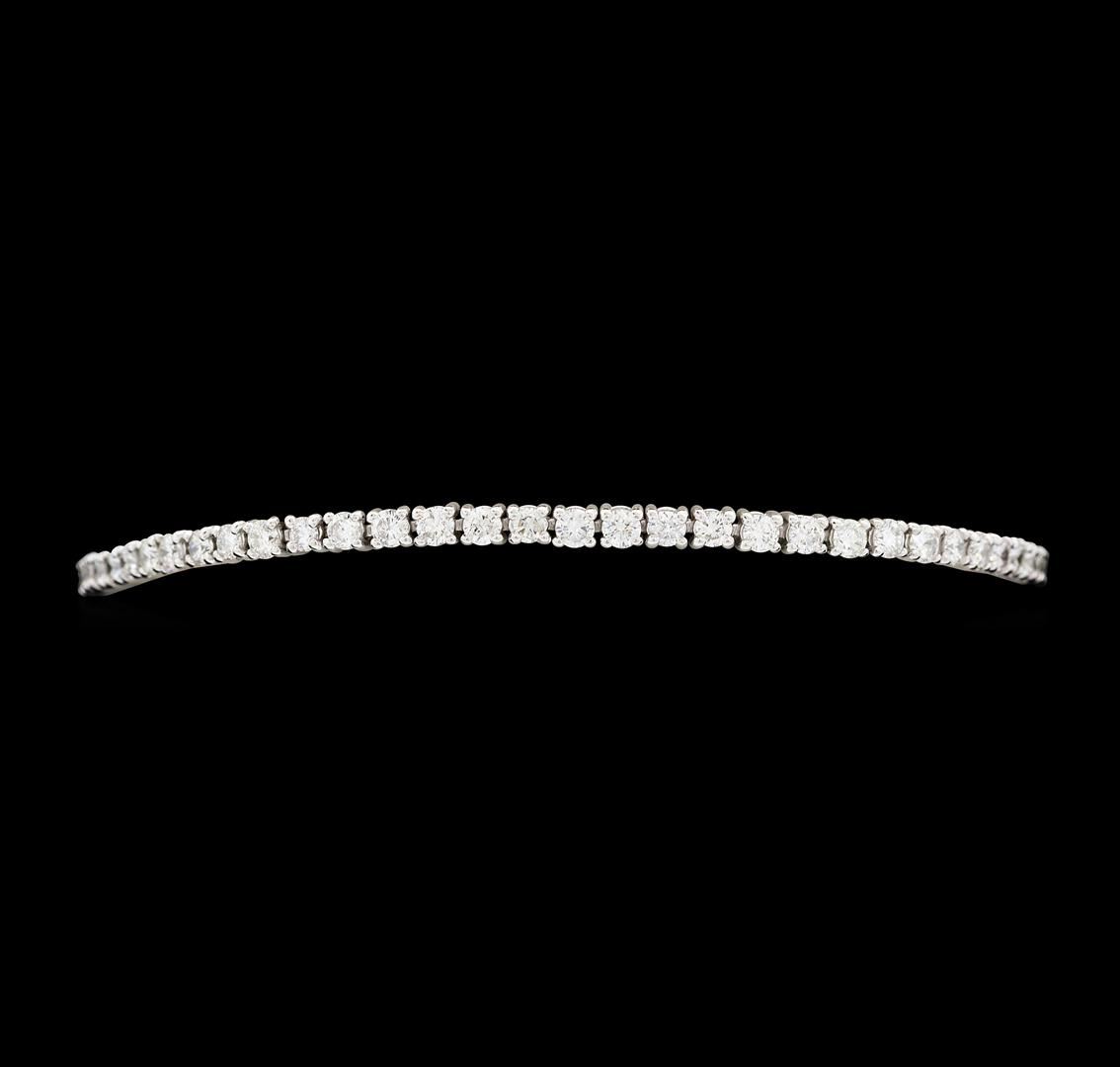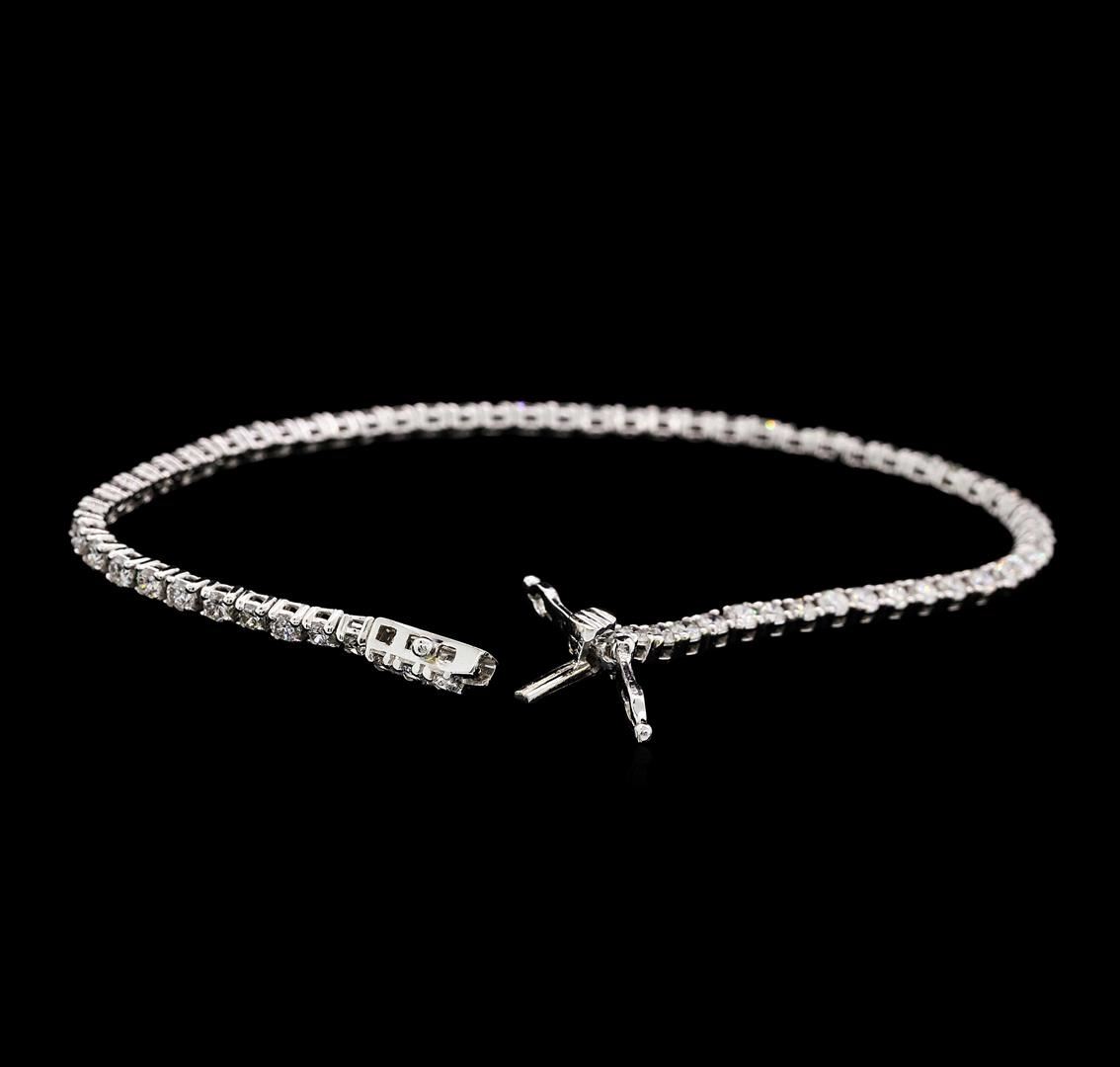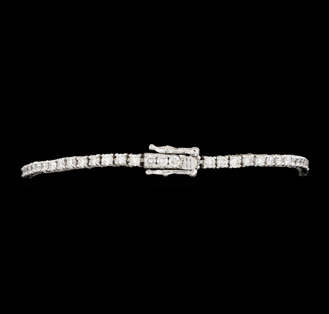 One electronically tested 14KT white gold lady's cast fashion tennis bracelet with a tongue clasp with double foldover safeties with a bright polish finish. The featured lady's bracelet measures seven inches in length. Identified with markings of "14K". Condition is new, good workmanship. Containing: Sixty-Five prong set round brilliant cut diamonds, measuring 2.25 - 2.15 x 1.36mm (depth est.) approximate. Total Weight of 65 Stones = 2.50ct. Graded in the setting. Color G - HClarity SI-1 to I-1 Cut Good. Total Weight of Diamonds 2.50ct.. Total Weight of Bracelet 6.70gm. GAS Appraised.