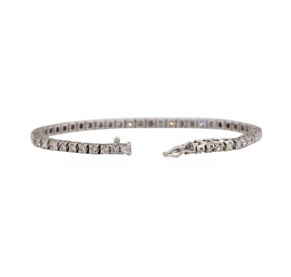 One electronically tested 14KT white gold lady's combination cast & assembled fashion tennis bracelet with a tongue clasp & foldover safety with a bright polish finish. The featured lady's bracelet measures approximately six and a half inches long. Identified with markings of '14K'. Condition is like new, good workmanship. Containing: Fifty-One prong set round brilliant cut diamonds, measuring 2.40 - 2.35 x 1.48mm (depth est.) approximate total weight of 51 Stones = 2.60ct. Graded in the setting. Color H - I Clarity SI-3 to I-1 Cut Good. Total Weight of Diamonds 2.60ct. Total Weight of Bracelet 10.60gm. GAS Appraised.