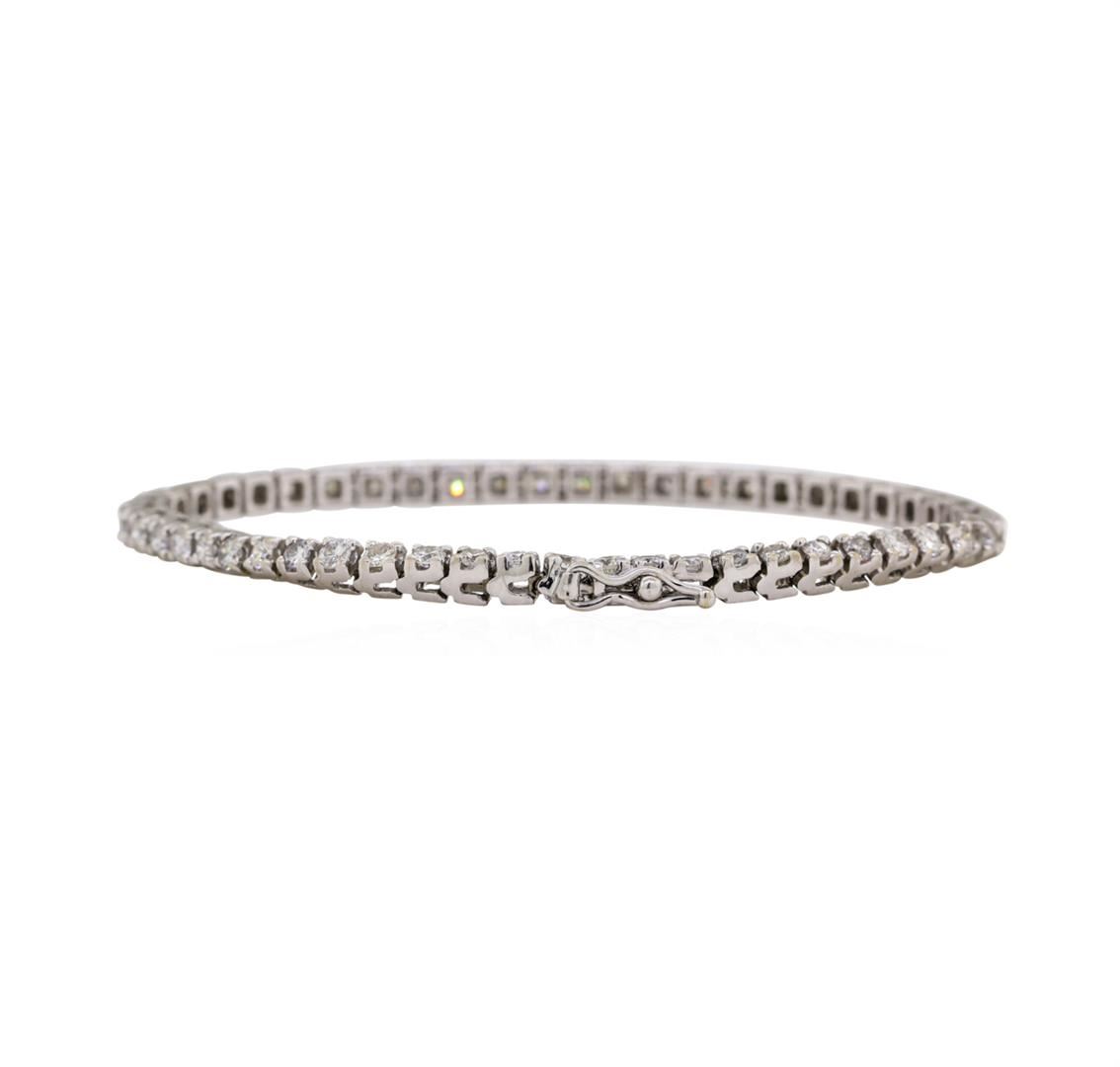 One electronically tested 14KT white gold lady's combination cast & assembled fashion tennis bracelet with a tongue clasp & foldover safety with a bright polish finish. The featured lady's bracelet measures approximately six and a half inches long. Identified with markings of '14K'. Condition is like new, good workmanship. Containing: Fifty-One prong set round brilliant cut diamonds, measuring 2.40 - 2.35 x 1.48mm (depth est.) approximate total weight of 51 Stones = 2.60ct. Graded in the setting. Color H - I Clarity SI-3 to I-1 Cut Good. Total Weight of Diamonds 2.60ct. Total Weight of Bracelet 10.60gm. GAS Appraised.