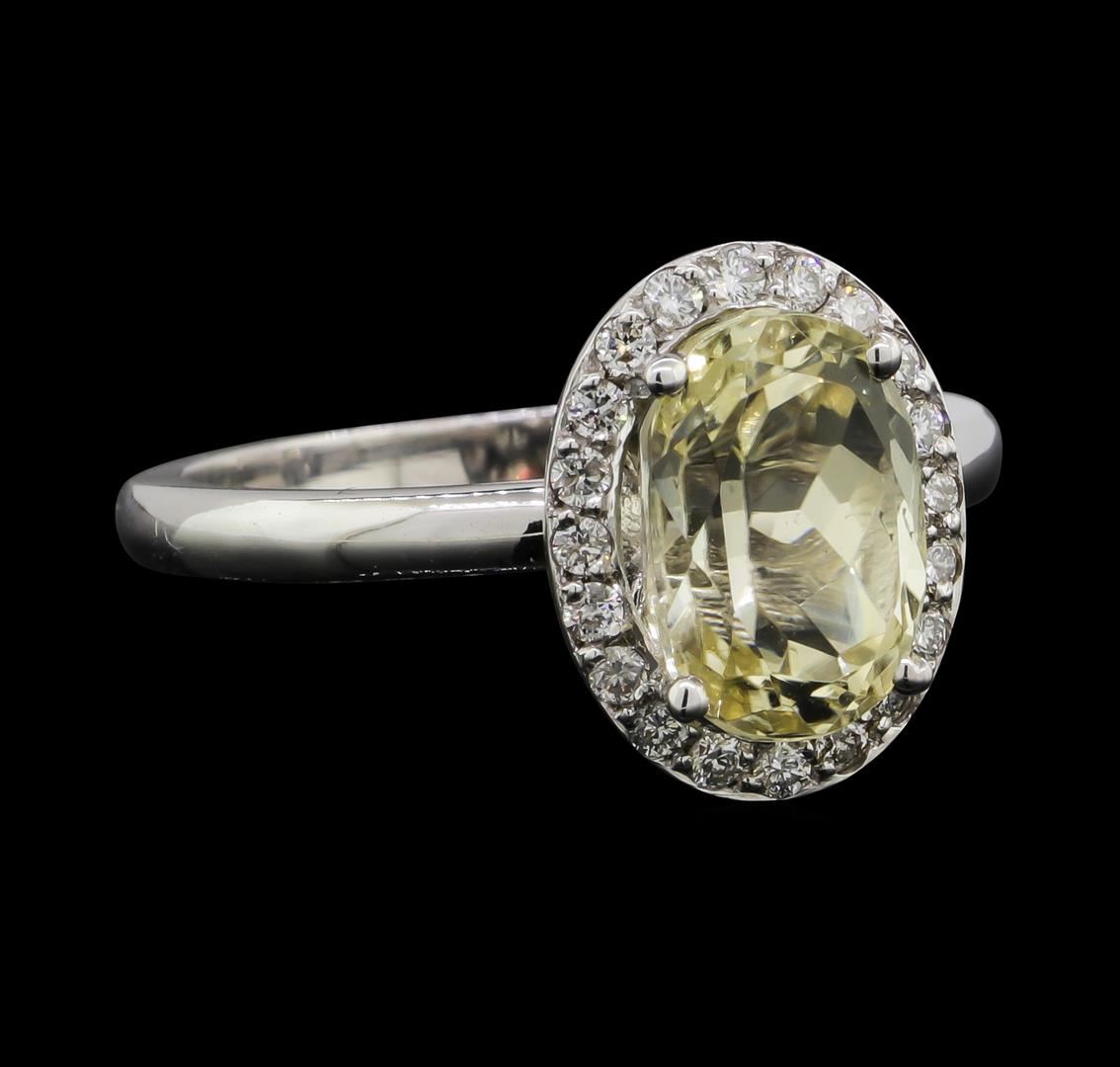 One lady's ring featuring: 14KT white gold weighing 3.6 grams containing one center beryl weighing 2.63ct and diamonds weighing 0.18ctw.
