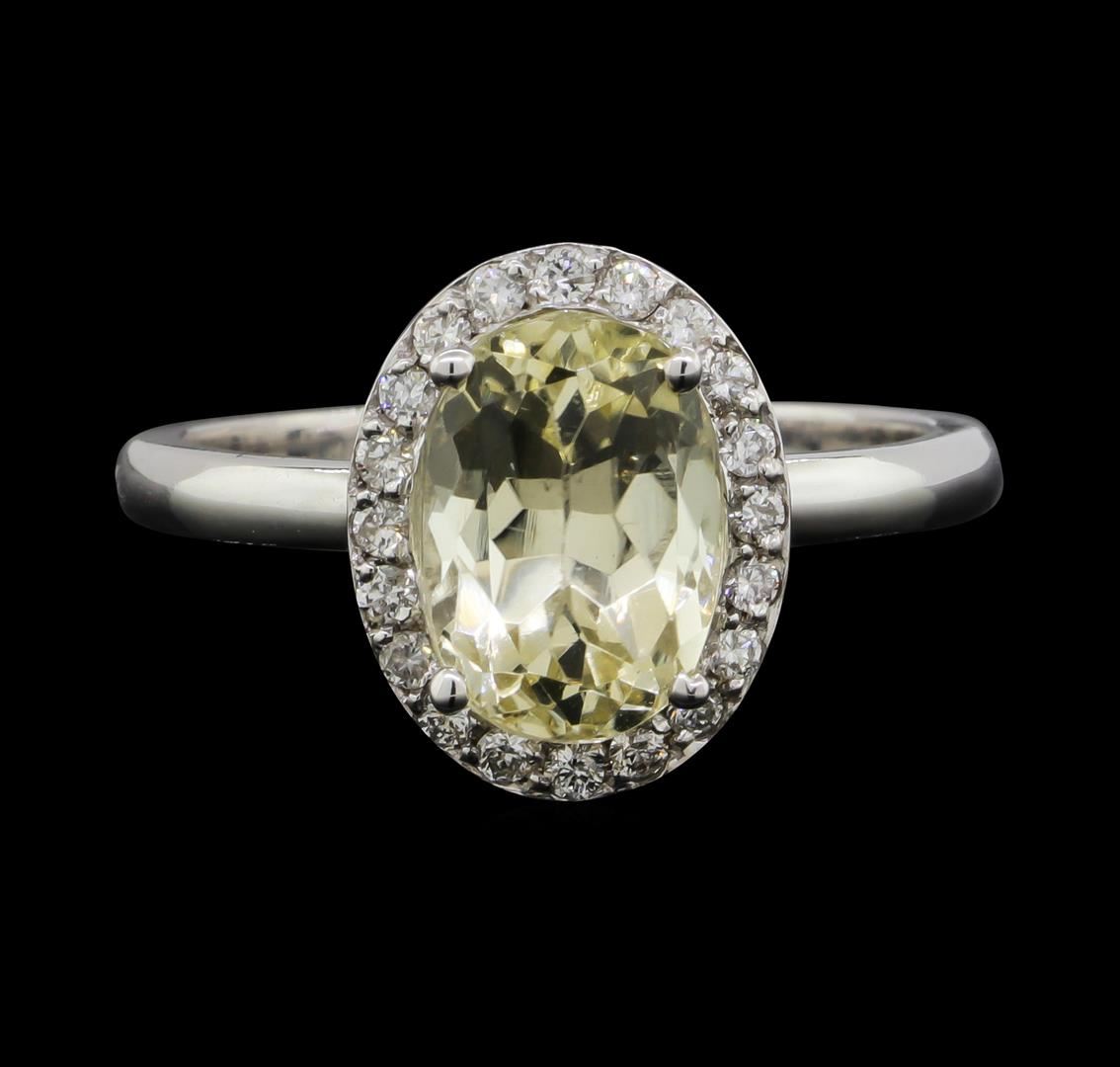 One lady's ring featuring: 14KT white gold weighing 3.6 grams containing one center beryl weighing 2.63ct and diamonds weighing 0.18ctw.