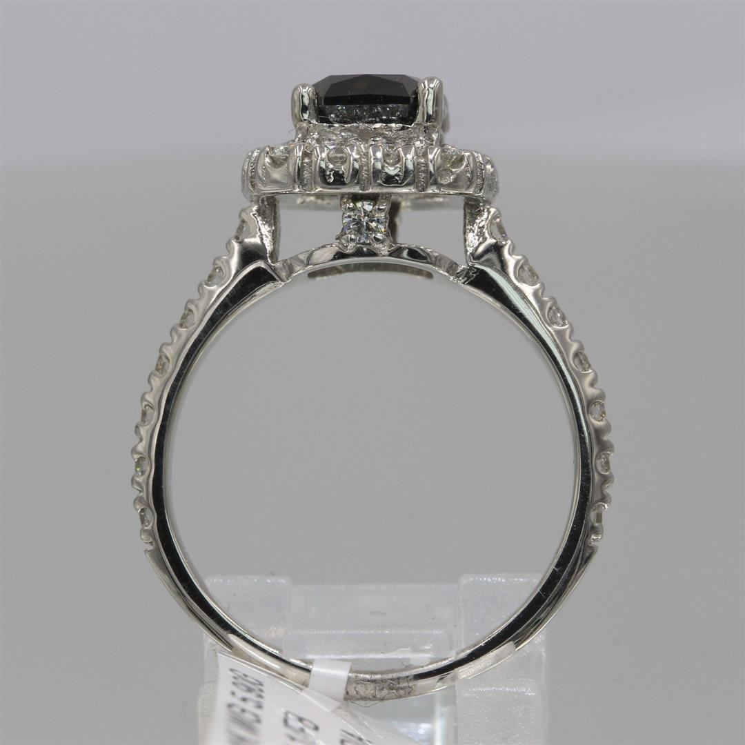 One Cushion Cut Fancy Brown Diamond Engagement Halo Ring in 14k White Gold. Total gram weight of ring is 5.90g. Total carat weight is 2.76 carats with a total of 31 diamonds. Condition is brand new. Main diamond is not enhanced / natural and shape is cushion cut. Main diamond is 2.03 carats, clarity SI1 - SI2, color fancy brown / cognac, and cut is excellent. The side diamond is not enhanced and natural. Side diamonds total carat weight is 0.73 carats, color G-H, clarity SI1- SI2, shape is round cut, and cut is excellent.